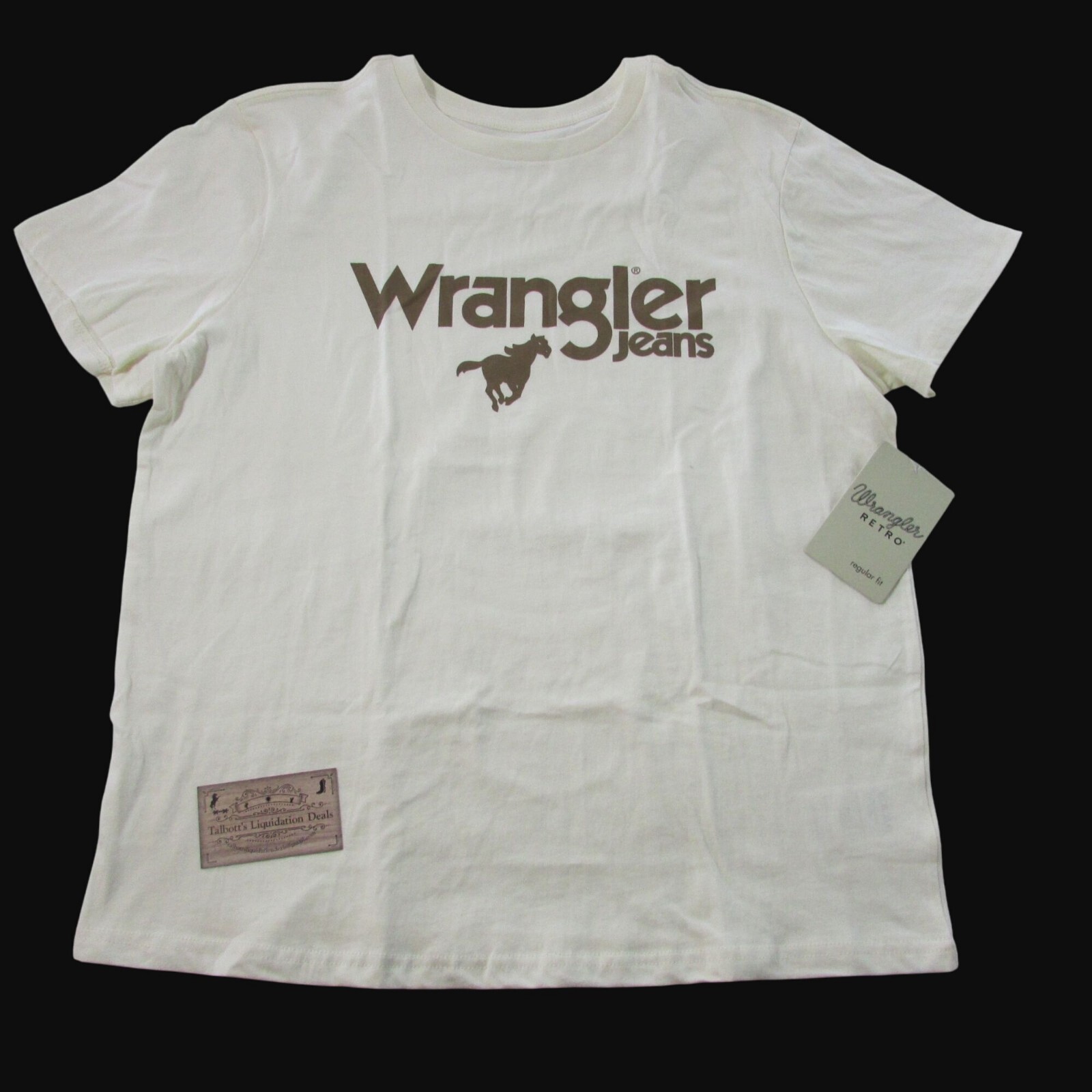 Brand new with tags Women's Size Brand: Wrangler Color: Antique White Short Sleeve Logo Graphic Tee Shirt Top Approx Measurements; Laying Flat Pit to pit x Length Large - 21.5" x 24.5" XL - 23" x 25.5" XXL - 25.5" x 26":