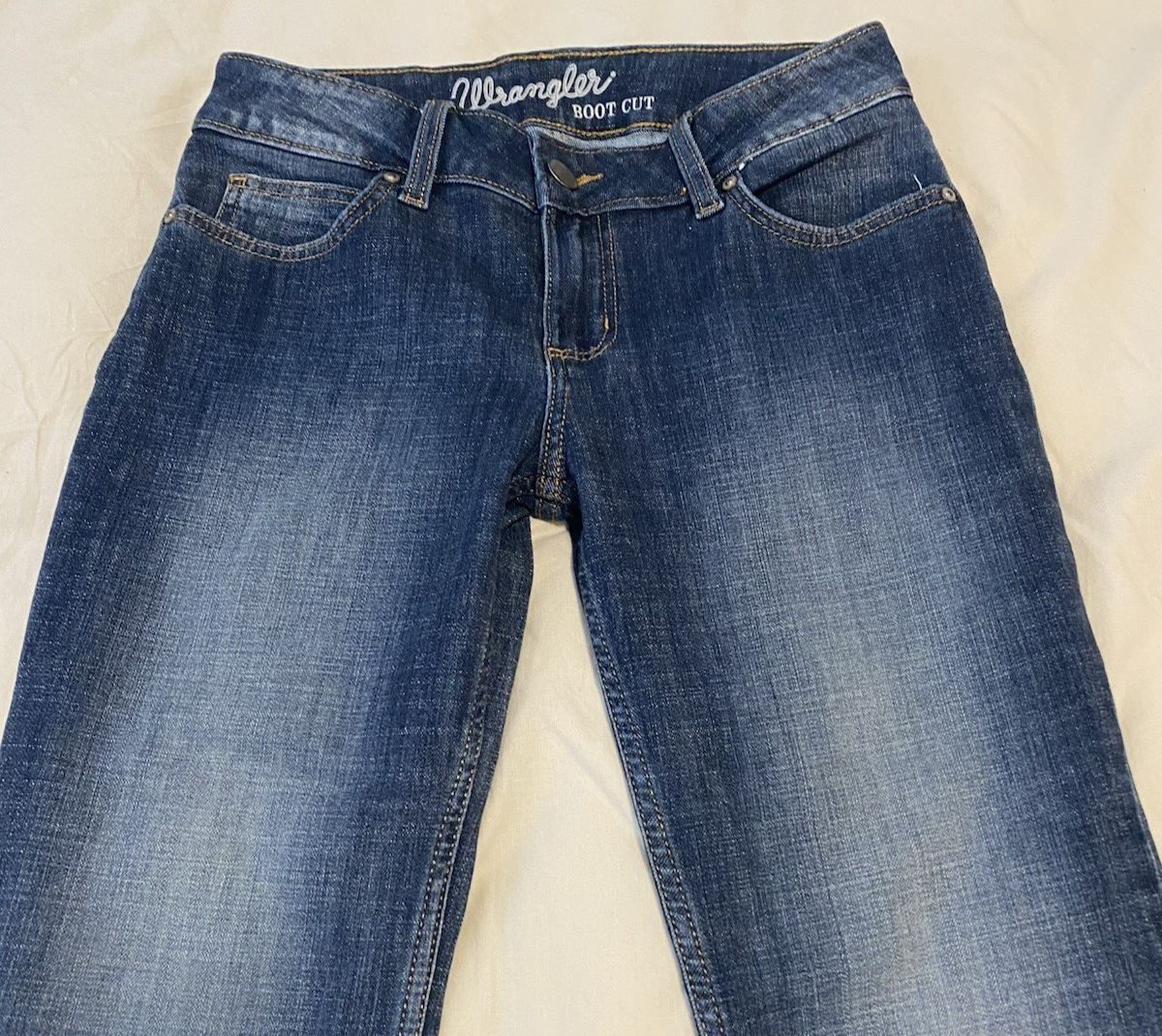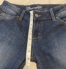Wrangler Womens Boot Cut Jeans Size 3 Mid Rise Dark Denim Cowgirl Western Y2K Excellent preowned condition. No visible flaws. -64% Cotton/19% Rayon/16% Polyester/1% Spandex -Stretch -5 Pockets -Machine Wash -SKU E26-525 -Measurements in Photos Questions? Please ask. Ships next business day. Offers welcome.