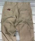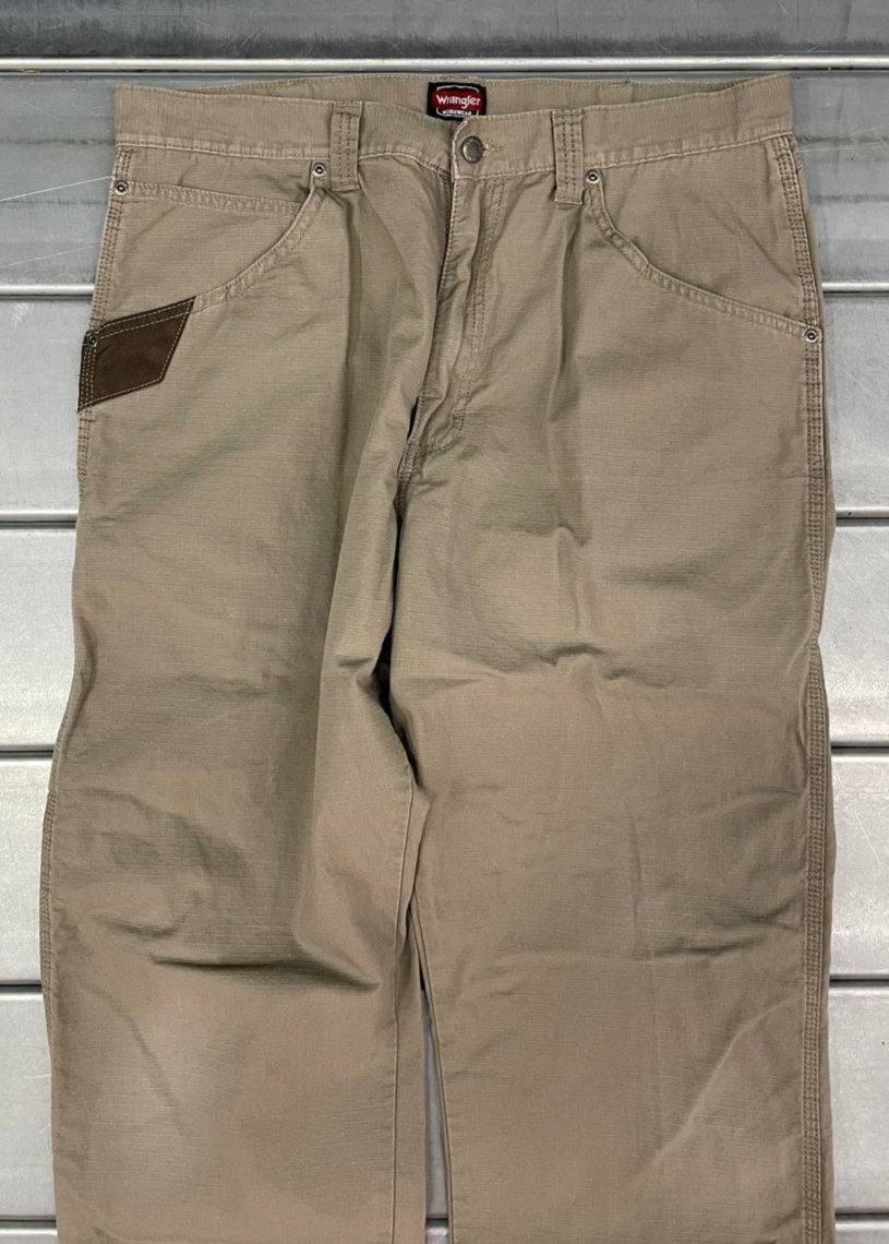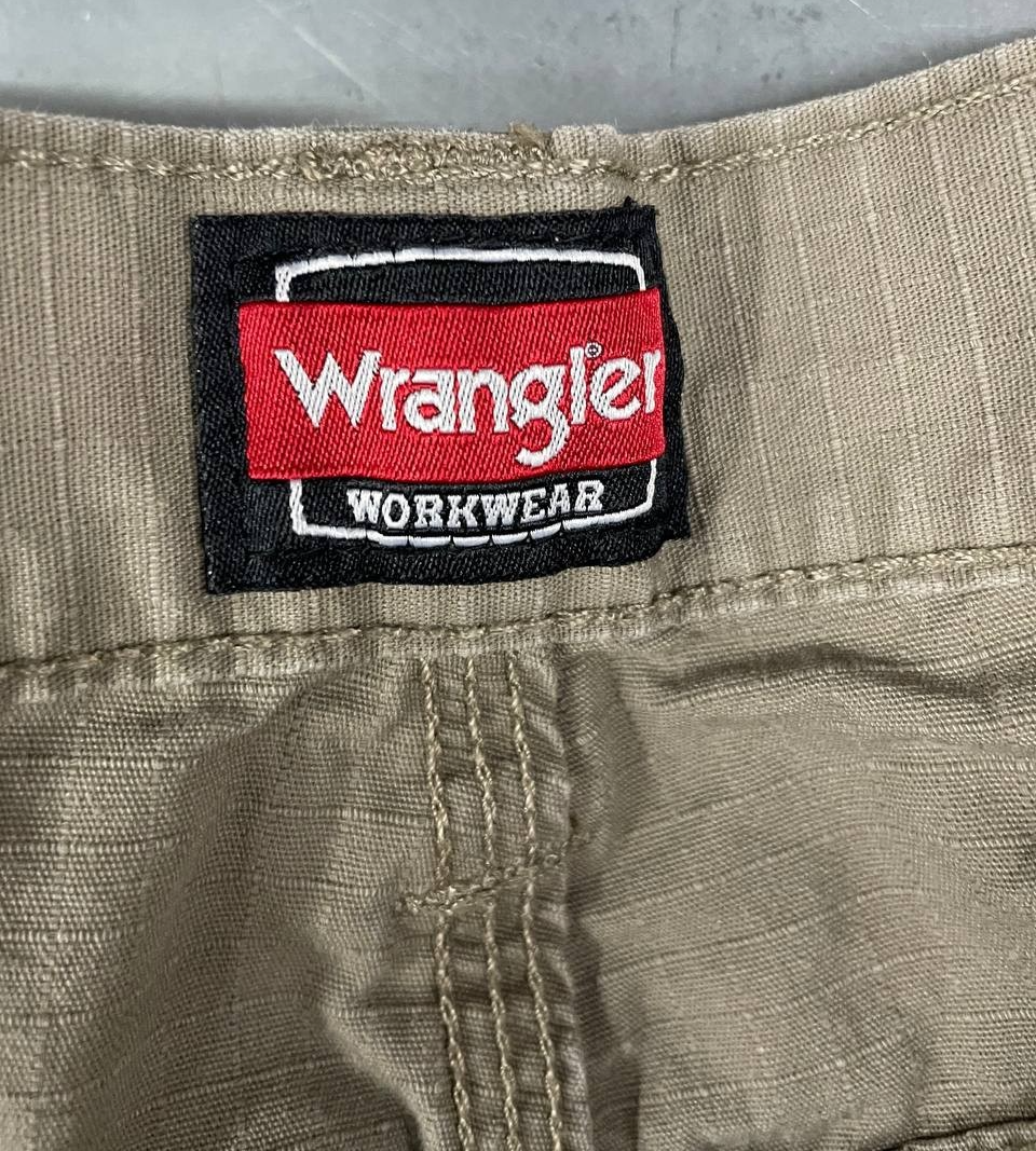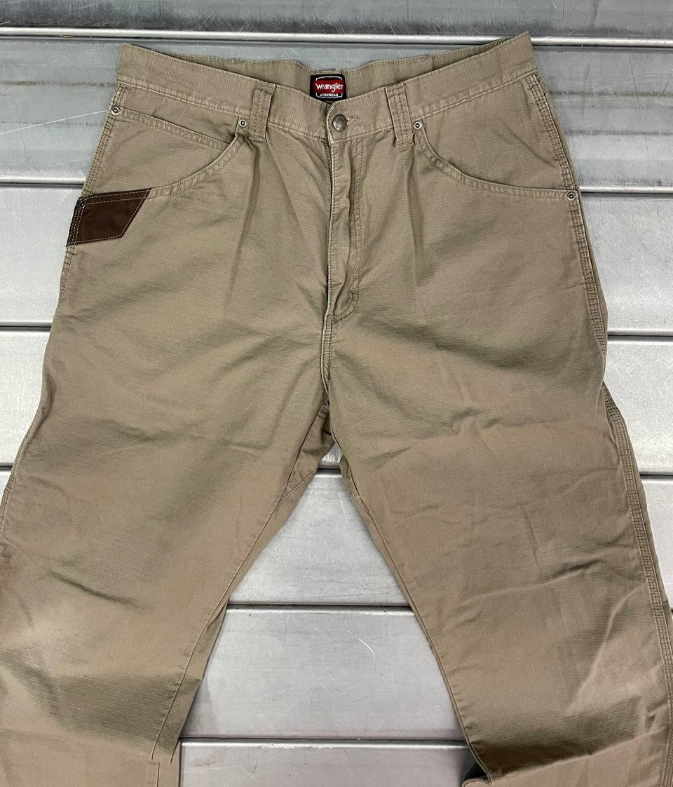 Wrangler Workwear Carpenter Pants Mens 34x34 Khaki Utility Pocket Durable Canvas Waistline approx .: 17 Inches Flat Lay Inseam Approx : 33 Inches Flat Lay Good condition, size says 36 but measured 34, please see pic for details and measurements