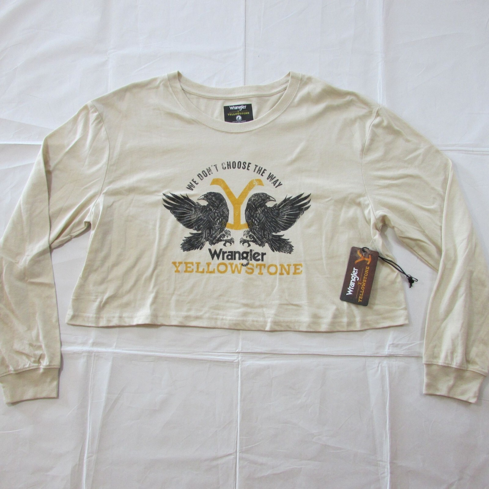 Brand new with tags Women's Size Brand: Wrangler X Yellowstone Color: Oatmeal Heather Long Sleeve Eagle Graphic Crop Top Tee Shirt Approx Measurements: (Chest x Length) XL - 23.5" x 19" XXL - 26" x 20" XXXL - 28" x 20.5"