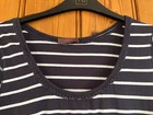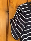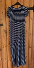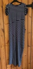Wrap navy & white striped short sleeve jersey dress Size UK 10 Round neck with embroidery trim 60% cotton 40% modal Length - from top of shoulder to hem - approx 53" Underarm to underarm - approx 17" Horizontal & diagonal stripes Excellent condition