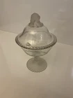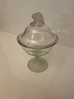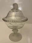 The Wright Gillinder & Sons EAPG Frosted Lion Covered Bowl is a Victorian-era decorative piece made of pressed glass in the United States. This 13.5" round bowl features an etched lion design, giving it a unique and vintage appeal. Handmade with a frosted finish, this original compote pedestal bowl is a beautiful addition to any collection, perfect for all occasions.