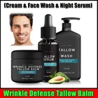 Wrinkle Defense Tallow Balm,Skin Care for Men,Natural Tallow Moisturizer Face,Beef Tallow Balm Face Moisturizer,Diminish Fine Lines,Wrinkles | Mens Skincare Kit(Cream & Face Wash & Night Serum) Serum=30ml Cream =50gm Face Wash=120ml Wrinkle Defense Tallow Balm,Skin Care for Men,Natural Tallow Moisturizer Face,Beef Tallow Balm Face Moisturizer,Diminish Fine Lines,Wrinkles | Mens Skincare Kit(Cream & Face Wash & Night Serum) [Wrinkle Defense Tallow Balm] Crafted with precision, our Wrinkle Defense Tallow Balm is your ultimate solution for reducing the appearance of wrinkles. Infused with Beef Tallow, this luxurious balm rejuvenates and nourishes your skin, leaving it smoother, firmer, and more radiant with each use.(Net: 50 G/1.76 OZ) [Tallow Face Wash] With the cleansing and moisturizing properties of tallow facial cleanser, you can deeply cleanse pores and make your face cleaner and healthier.(Net: 120 ML/4 FL. OZ. ) [Anti-Wrinkle Night Serum] Elevate your nighttime skincare routine with our Anti-Wrinkle Night Serum. Designed to target and minimize wrinkles while you sleep, this transformative serum to nourish and rejuvenate your skin overnight. (Net: 30 ML/1FL. OZ) [Natural Ingredients] This Product Is Grass-Fed Natural Formulation, Grassfed Beef Tallow is rich in nutrients that align closely with the skin's own sebum, making it ideal for supporting the skin's full health. Added essential oils not only infuse the balm with a pleasant scent but also carry additional skin health benefits [Suitable for All Face Types] Mens face care set suitable for normal, dry, oily, and sensitive face types! This step-by-step beauty gift sets will make your face feel soft, plump, and hydrated Note: This Product is designed to deliver optimal results, offering high-quality performance and satisfaction. Please note that individual experiences and outcomes may vary based on personal use, preferences, and unique circumstances. For best results, we recommend following the provided guidelines and ensuring the product is used as intended. Product result may vary for every individual. NOTE Hello Buyer, Thank you for your interest in our product! Please note that I am a reseller, and your order will be shipped directly from our nearest warehouse to your address. If you have any questions or need assistance, feel free to reach out.