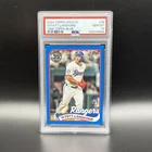2024 Topps Update #36 Wyatt Langford 1989 Blue PSA 10 Gem Mint Color Match RC is a sports trading card featuring Wyatt Langford, the rookie player of the Texas Rangers in the MLB. The card is a part of the 1989 Topps Baseball Blue insert set and has a standard size. It is manufactured by Topps and has a blue parallel/variety. The card is a great addition to any baseball fan's collection and is perfect for those who are looking for a rare find.