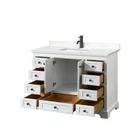 Powered by Frooition Top Products Kitchen Bathroom Lighting Fans Hardware Decor & Organization Wyndham Collection WCS202048S-VCA-MXX Deborah 48" Free Standing Single Basin Vanity Set with Cultured Marble Vanity Top Overview Item Description A contemporary classic if ever there was one, the gorgeous Deborah vanity series is truly a winning combination of authentic English charm, warm practicality and a touch of the modern. The answer to your bathroom remodel quest is made simple with the Deborah collection, which is crafted for uncompromising function as well as form. Add this beautifully-designed piece to your bathroom today. Included Components: Covered under Wyndham Collection's 2 year limited warranty Plywood vanity cabinet with 2 doors and 9 drawers Cultured marble vanity top with 1 porcelain sink Faucet is not included and must be purchased separately Cabinet Features: Constructed from plywood providing a lifetime of durability Free standing installation – vanity is seated on the floor with wall anchors, providing a functional design Double door design provides easy access to storage space Soft close drawer slides operate on smooth ball-bearings and prevent drawers from slamming shut Vanity cabinet includes matching decorative hardware Vanity will need to be assembled Vanity Top Features: Cultured marble vanity top includes 1 sink constructed of porcelain 1 pre-drilled faucet hole Sink features a rectangular single basin work space Center drain location provides optimal draining capability Equipped with an overflow drain to help prevent water overflow and spillage from occurring Vanity top includes matching backsplash and sidesplash Cabinet Specifications: Cabinet Width: 47-1/4" (from left to right) Cabinet Height: 34-1/4" (from top to bottom) Cabinet Depth: 21-1/2" (from front to back) Number of Doors: 2 Number of Drawers: 9 Number of Shelves: 0 Vanity Top Specifications: Vanity Top Width: 48" (left edge to right edge) Vanity Top Depth: 22" (front edge to back edge) Backsplash Height: 3" Number of Basins: 1 Sink Measurements: 19" L x 15" W x 8" H Sink Cutout Width: 11-1/2" (front to back) Sink Cutout Length: 17" (left to right) Sink Basin Measurements: 17" L x 11-1/2" W x 6-1/2" H Number of Faucet Holes: 1 Faucet Centers: 0" (distance between the installation holes for the faucet handles) Why Choose BuildInc? OUR PROMISE TO YOU About Us At Build, we promise to provide the best selection we can, most competitive pricing, and unmatched customer service. Our store has quality home improvement products from trusted manufacturers like Moen, American Standard, Delta, Kraus, Kichler, Progress Lighting, Schlage, Kwikset, Baldwin, Broan, NuTone, Air King, and Rev-A-Shelf. With over 200,000 home improvement products for you to choose from, we have just what you need to get your project done. Fast & Free Shipping We promise to make it our priority to get you your items as fast as we can. We ship from 440 warehouses around the country, ensuring that your product will get to you as soon as possible. We know you're eager to get your hands on your new purchase, we would be too. As a bonus, most items ship for free. Returns We are happy to accept returns of unused or defective items for a refund within 30 days from the date of delivery. For returns outside 30 days, please contact our Customer Service team to go over our options. For full details, please view the Shipping and Payments tab above. To initiate a return simply go to the eBay Returns Portal and submit a return request. We ask that all items be returned with all original components via a traceable method. Once your return is received and processed, we will quickly get your refund or replacement issued. If for any reason you are unsatisfied with your purchase or for product or warranty questions, please contact Customer Service team for assistance. More Items! View more great items Wyndham Collection WCF292942S-QTZ-UNSMXX Miranda 42" - Dark Blue / Giotto Quartz $1,467.03 Wyndham Collection WCH717142S-QTZ-UNSMXX Elan 42" - White Oak / Giotto Quartz $1,370.85 Swiss Madison SM-BV557D Cascade 48" - Brown Oak / White $935.72 Swiss Madison SM-BV557D-3 Cascade 48" - Black Oak / Matte Black $1,074.02 About Us | Shipping | Returns | Contact Us | FAQ | Collections | Special Offers! Powered by Frooition Frooition Frooition | No-js Template | eBay design, eBay store design, eBay shop design, eBay template design, eBay listing design (ver:froo_no_js) This listing is currently undergoing maintenance, we apologize for any inconvenience caused.