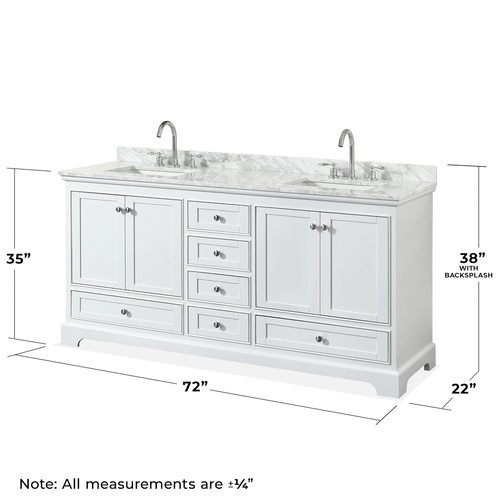 Powered by Frooition Top Products Kitchen Bathroom Lighting Fans Hardware Decor & Organization Wyndham Collection WCS202072DCMUNSMXX Deborah 72" Free Standing Double Vanity Set with Wood Cabinet and Marble Vanity Top Overview Item Description A contemporary classic if ever there was one, the gorgeous Deborah vanity series is truly a winning combination of authentic English charm, warm practicality and a touch of the modern. The answer to your bathroom remodel quest is made simple with the Deborah collection, which is crafted for uncompromising function as well as form. Add this beautifully-designed piece to your bathroom today. Included Components: Covered under Wyndham Collection's 2 year limited warranty Marble vanity top with double basin porcelain sinks and matching backsplash Faucet is not included and must be purchased separately Cabinet Features: Constructed of environmentally friendly, zero emissions plywood, engineered to prevent warping and last a lifetime Multi-stage wood preparation, sanding, and finishing process Highly water-resistant low V.O.C. sealed finish Beautiful transitional styling that complements any bathroom Practical free standing design - vanity is seated on the floor with wall anchors, providing a functional design Minimal assembly required Deep dovetailed drawers Fully extending undermount soft-close drawer slide(s) Counter includes 3" backsplash Metal exterior hardware included Four (4) functional doors Six (6) functional drawers Plenty of storage space Vanity Top Features: Marble countertops with porcelain square sink(s) are drilled for 8" widespread 3 hole faucet mounts Faucet(s) not included - must be purchased separately Center drain location provides optimal draining capability Equipped with overflow to help prevent water spillage from occurring Vanity top includes matching backsplash Backsplash comes in two pieces (Cut from one single piece due to high probability of breakage) Variations in the shading and grain of our natural stone products enhance the individuality of your vanity and ensure that it will be truly unique Plenty of counter space Cabinet Specifications: Cabinet Width: 72" (from left to right) Cabinet Height: 35" (from top to bottom) Cabinet Depth: 22" (from back to front) Number of Doors: 4 Number of Drawers: 6 Vanity Top Specifications: Vanity Top Width: 72" (from left edge to right edge) Vanity Top Depth: 22" (front edge to back edge) Backsplash Height: 3" Number of Basins: 2 Sink Measurements: 11-1/2" L x 17" W Sink Basin Measurements: 11-1/2" L x 17" W x 6-1/2" D Number of Faucet Holes: 3 Faucet Centers: 8" Variations: WCS202072DCMUNSMXX (This Model): Double Vanity Set Only with Two Rectangular Sinks WCS202072DCMUNOM24: Double Vanity Set with Two 24" Mirrors and Oval Sinks WCS202072DCMUNOM70: Double Vanity Set with 70" Mirror and Two Oval Sinks WCS202072DCMUNOMED: Double Vanity Set with Two Medicine Cabinets and Oval Sinks WCS202072DCMUNOMXX: Double Vanity Set Only with Two Oval Sinks WCS202072DCMUNSM24: Double Vanity Set with Two 24" Mirrors and Rectangular Sinks WCS202072DCMUNSM70: Double Vanity Set with 70" Mirror and Two Rectangular Sinks WCS202072DCMUNSMED: Double Vanity Set with Two Medicine Cabinets and Rectangular Sinks Why Choose BuildInc? OUR PROMISE TO YOU About Us At Build, we promise to provide the best selection we can, most competitive pricing, and unmatched customer service. Our store has quality home improvement products from trusted manufacturers like Moen, American Standard, Delta, Kraus, Kichler, Progress Lighting, Schlage, Kwikset, Baldwin, Broan, NuTone, Air King, and Rev-A-Shelf. With over 200,000 home improvement products for you to choose from, we have just what you need to get your project done. Fast & Free Shipping We promise to make it our priority to get you your items as fast as we can. We ship from 440 warehouses around the country, ensuring that your product will get to you as soon as possible. We know you're eager to get your hands on your new purchase, we would be too. As a bonus, most items ship for free. Returns We are happy to accept returns of unused or defective items for a refund within 30 days from the date of delivery. For returns outside 30 days, please contact our Customer Service team to go over our options. For full details, please view the Shipping and Payments tab above. To initiate a return simply go to the eBay Returns Portal and submit a return request. We ask that all items be returned with all original components via a traceable method. Once your return is received and processed, we will quickly get your refund or replacement issued. If for any reason you are unsatisfied with your purchase or for product or warranty questions, please contact Customer Service team for assistance. More Items! View more great items Swiss Madison SM-BV216D-3MB Annecy 59" - White / Matte Black $1,070.12 Swiss Madison SM-BV666DMB Classe 59" - Golden Oak / Matte Black $1,143.77 Swiss Madison SM-BV226DMB Annecy 59" - Black Walnut / Matte Black $1,078.56 Swiss Madison SM-BV412-3 Cannes 24" - White $785.26 About Us | Shipping | Returns | Contact Us | FAQ | Collections | Special Offers! Powered by Frooition Frooition Frooition | No-js Template | eBay design, eBay store design, eBay shop design, eBay template design, eBay listing design (ver:froo_no_js) This listing is currently undergoing maintenance, we apologize for any inconvenience caused.