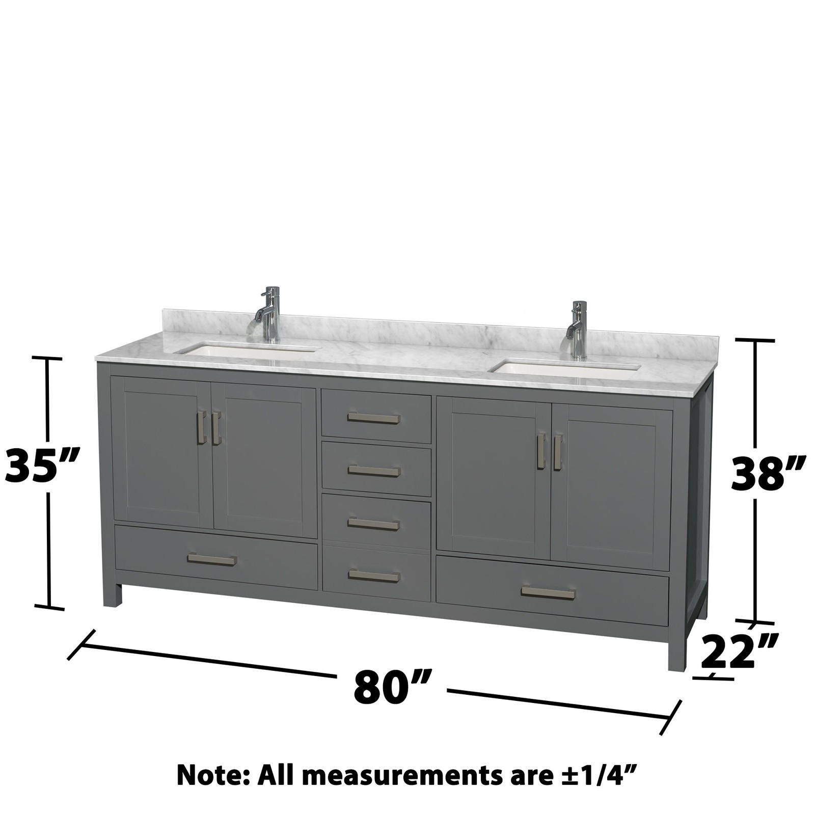 Powered by Frooition Top Products Kitchen Bathroom Lighting Fans Hardware Decor & Organization Wyndham Collection WCS141480DUNSM24 Sheffield 80" Free Standing Double Basin Vanity Set with Hardwood Cabinet, Marble Vanity Top, Framed Mirrors, and Undermount Rectangular Sinks Overview Item Description Included Components: Two year limited warranty Hardwood vanity cabinet Marble countertop Undermount rectangular sinks Two 24" framed rectangular vanity mirrors Cabinet Features: Constructed of environmentally friendly, zero emissions solid wood, engineered to prevent warping and last a lifetime 12-stage wood preparation, sanding, painting and hand-finishing process Highly water-resistant low VOC sealed finish Beautiful transitional styling that compliments any bathroom Practical floor-standing design Minimal assembly required Deep doweled drawers Fully extending undermount soft-close drawer slides Concealed soft-close door hinges Metal exterior hardware with brushed chrome finish Two 24" framed rectangular vanity mirrors Vanity Top Features: Marble countertop Undermount rectangular sinks Pre-drilled with single hole faucet mounts Faucets not included Countertop includes 3" backsplash Backsplash comes in two pieces (cut from one single piece due to high probability of breakage) Cabinet Specifications: Overall Height: 35" (ground level to countertop surface) Overall Depth: 22" (back most to front most part on vanity cabinet) Overall Width: 80" (left most to right most part on vanity cabinet) Cabinet Installation Type: Free Standing Number of Drawers: 5 Number of Doors: 4 Mirror Height: 33" Mirror Width: 24" Mirror Depth: 3/4" Vanity Top Specifications: Vanity Top Thickness: 3/4” Vanity Top Depth: 22" (back to front of vanity top) Vanity Top Width: 80" (left to right of vanity top) Backsplash Height: 3" Number of Faucet Holes: 1 Basin Measurements: 17" L x 11-1/4" W x 6" D Product Variations: WCS141480DUNSM24 (This Model): Vanity Cabinet with 24" Mirror WCS141480DUNSM70: Vanity Cabinet with 70" Mirror WCS141480DUNSMED: Vanity Cabinet with Medicine Cabinets WCS141480DUNSMXX: Vanity Cabinet Only Why Choose BuildInc? OUR PROMISE TO YOU About Us At Build, we promise to provide the best selection we can, most competitive pricing, and unmatched customer service. Our store has quality home improvement products from trusted manufacturers like Moen, American Standard, Delta, Kraus, Kichler, Progress Lighting, Schlage, Kwikset, Baldwin, Broan, NuTone, Air King, and Rev-A-Shelf. With over 200,000 home improvement products for you to choose from, we have just what you need to get your project done. Fast & Free Shipping We promise to make it our priority to get you your items as fast as we can. We ship from 440 warehouses around the country, ensuring that your product will get to you as soon as possible. We know you're eager to get your hands on your new purchase, we would be too. As a bonus, most items ship for free. Returns We are happy to accept returns of unused or defective items for a refund within 30 days from the date of delivery. For returns outside 30 days, please contact our Customer Service team to go over our options. For full details, please view the Shipping and Payments tab above. To initiate a return simply go to the eBay Returns Portal and submit a return request. We ask that all items be returned with all original components via a traceable method. Once your return is received and processed, we will quickly get your refund or replacement issued. If for any reason you are unsatisfied with your purchase or for product or warranty questions, please contact Customer Service team for assistance. More Items! View more great items Wyndham Collection WCS202060DCMUNOMXX Deborah 60" - Dark Espresso / White $1,711.00 Wyndham Collection WCS202060DCXSXXMED Deborah 59-1/4" Double - Dark Espresso / $1,845.26 Wyndham Collection WCS202060D-QTZ-UNSM58 Deborah 60" - Dark Espresso / White $1,953.70 Wyndham Collection WCF414166D-QTZ-UNSMXX Strada 66" - White / Giotto Quartz Top $2,099.98 About Us | Shipping | Returns | Contact Us | FAQ | Collections | Special Offers! Powered by Frooition Frooition Frooition | No-js Template | eBay design, eBay store design, eBay shop design, eBay template design, eBay listing design (ver:froo_no_js) This listing is currently undergoing maintenance, we apologize for any inconvenience caused.