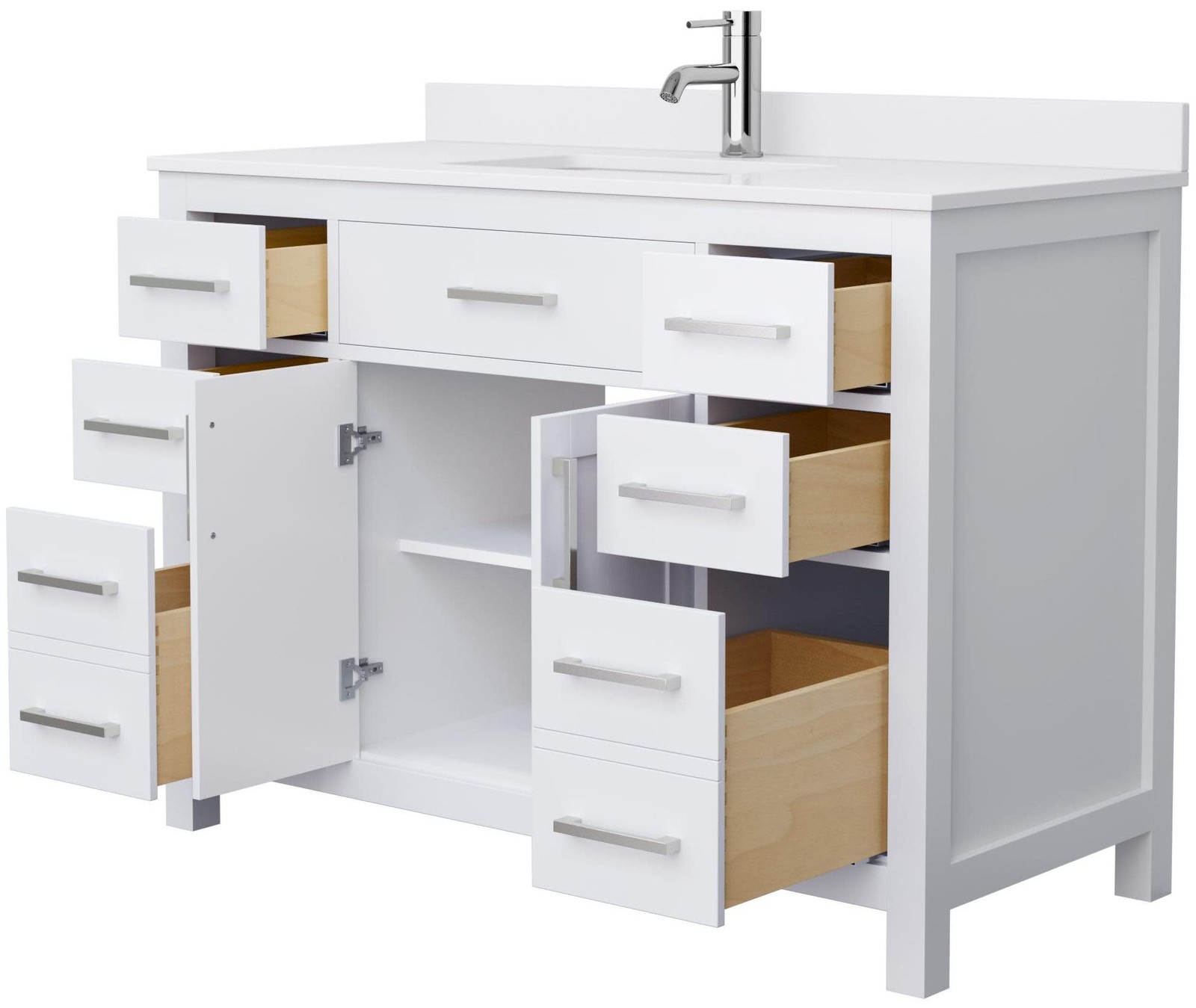 Powered by Frooition Top Products Kitchen Bathroom Lighting Fans Hardware Decor & Organization Wyndham Collection WCG242448S-UNSMXX Beckett 48" Free Standing Single Basin Vanity Set with Cabinet and Cultured Marble Vanity Top Overview Item Description Fantastic value and classic design. The elegant Beckett vanity has it all, with quality touches like brushed or matte metal hardware accents, dovetailed drawers, cultured marble counters and soft-close doors and drawers. Ample storage and a double-depth lower drawer give you plenty of room for those bathroom necessities. Do your bathroom right, with the beautiful Beckett vanity series. Included Components: Covered under Wyndham Collection's 2 year limited warranty Wood vanity cabinet with 2 doors, 6 drawers, and 1 shelf Cultured marble vanity top with 1 porcelain sink and matching backsplash Faucet is not included and must be purchased separately Cabinet Features: Constructed from wood providing a lifetime of durability Free standing installation – vanity is seated on the floor with wall anchors, providing a functional design Double door design provides easy access to storage space 6 full extension drawers with soft-close slides allow for organized storage Soft close drawer slides operate on smooth ball-bearings and prevent drawers from slamming shut Vanity cabinet includes matching decorative hardware Vanity will need to be assembled Vanity Top Features: Cultured Marble vanity top includes 1 undermount sink Single pre-drilled faucet hole Center drain location provides optimal draining capability Equipped with an overflow drain to help prevent water overflow and spillage from occurring Vanity top includes matching backsplash and sidesplash Cabinet Specifications: Cabinet Width: 47-1/4" (from left to right) Cabinet Height: 34-1/4" (from top to bottom) Cabinet Depth: 21-1/2" (from front to back) Number of Doors: 2 Number of Drawers: 6 Number of Shelves: 1 Vanity Top Specifications: Vanity Top Width: 48" (left edge to right edge) Vanity Top Depth: 22" (front edge to back edge) Backsplash Height: 3" Number of Basins: 1 Sink Measurements: 19" L x 15" W x 8" H Sink Cutout Width: 11-1/4" (front to back) Sink Cutout Length: 17" (left to right) Sink Basin Measurements: 17" L x 11-1/4" W x 6-1/2" H Number of Faucet Holes: 1 Why Choose BuildInc? OUR PROMISE TO YOU About Us At Build, we promise to provide the best selection we can, most competitive pricing, and unmatched customer service. Our store has quality home improvement products from trusted manufacturers like Moen, American Standard, Delta, Kraus, Kichler, Progress Lighting, Schlage, Kwikset, Baldwin, Broan, NuTone, Air King, and Rev-A-Shelf. With over 200,000 home improvement products for you to choose from, we have just what you need to get your project done. Fast & Free Shipping We promise to make it our priority to get you your items as fast as we can. We ship from 440 warehouses around the country, ensuring that your product will get to you as soon as possible. We know you're eager to get your hands on your new purchase, we would be too. As a bonus, most items ship for free. Returns We are happy to accept returns of unused or defective items for a refund within 30 days from the date of delivery. For returns outside 30 days, please contact our Customer Service team to go over our options. For full details, please view the Shipping and Payments tab above. To initiate a return simply go to the eBay Returns Portal and submit a return request. We ask that all items be returned with all original components via a traceable method. Once your return is received and processed, we will quickly get your refund or replacement issued. If for any reason you are unsatisfied with your purchase or for product or warranty questions, please contact Customer Service team for assistance. More Items! View more great items James Martin Vanities 424-V60D-3VSL Lorelai 60" Double Basin Wood - Whitewashed $4,214.00 James Martin Vanities 424-V60D-3CSP Lorelai 60" Double Basin Wood - Whitewashed $4,014.00 Swiss Madison SM-BV471 Cascade 37" - Brown Oak $793.77 Native Trails VNA30 Topanga 30" Single - Wood $2,396.25 About Us | Shipping | Returns | Contact Us | FAQ | Collections | Special Offers! Powered by Frooition Frooition Frooition | No-js Template | eBay design, eBay store design, eBay shop design, eBay template design, eBay listing design (ver:froo_no_js) This listing is currently undergoing maintenance, we apologize for any inconvenience caused.