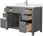 Love this vanity! The sleek dark gray finish and Carrara marble top look so elegant in my bathroom. The soft-close drawers are super smooth, and the double-depth lower drawer holds all my essentials. The brushed metal hardware adds a nice modern touch, and the whole unit feels solid and well-built. Perfect mix of style and function—definitely worth it!