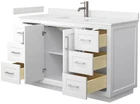 Powered by Frooition Top Products Kitchen Bathroom Lighting Fans Hardware Decor & Organization Wyndham Collection WCF2929-54S-VCA-MXX Miranda 54" Free Standing Single Basin Vanity Set with Cabinet and Cultured Marble Vanity Top Overview Item Description Sleek and chic are the best words to describe this European shaker vanity, a piece that bridges modern and contemporary. The Miranda vanity is manufactured in high quality durable materials and finished to the exacting standards you've come to expect from the Wyndham Collection. With function as important as form, the elegant design focuses on ample storage and counter space, a choice of three different handle colors, and 3D adjustable soft-close doors and dovetail drawers. Included Components: Covered under Wyndham Collection's 2 year limited warranty Plywood vanity cabinet with 2 doors 6 drawers 1 shelf Cultured Marble vanity top with 1 porcelain sink and matching backsplash Faucet is not included and must be purchased separately Cabinet Features: Constructed from plywood providing a lifetime of durability Free standing installation – vanity is seated on the floor with wall anchors, providing a functional design Double door design provides easy access to storage space 6 full extension drawers with soft-close slides allow for organized storage Soft close drawer slides operate on smooth ball-bearings and prevent drawers from slamming shut Vanity will need to be assembled Vanity Top Features: Cultured Marble vanity top includes 1 undermount sink Single pre-drilled faucet hole Center drain location provides optimal draining capability Equipped with an overflow drain to help prevent water overflow and spillage from occurring Vanity top includes matching backsplash and sidesplash Cabinet Specifications: Cabinet Width: 53-1/4" (from left to right) Cabinet Height: 33" (from top to bottom) Cabinet Depth: 21-3/4" (from front to back) Number of Doors: 2 Number of Drawers: 6 Number of Shelves: 1 Vanity Top Specifications: Vanity Top Width: 54" (left edge to right edge) Vanity Top Depth: 22" (front edge to back edge) Backsplash Height: 3" Number of Basins: 1 Sink Basin Measurements: 17" L x 11-1/4" W x 6-1/2" H Number of Faucet Holes: 1 Why Choose BuildInc? OUR PROMISE TO YOU About Us At Build, we promise to provide the best selection we can, most competitive pricing, and unmatched customer service. Our store has quality home improvement products from trusted manufacturers like Moen, American Standard, Delta, Kraus, Kichler, Progress Lighting, Schlage, Kwikset, Baldwin, Broan, NuTone, Air King, and Rev-A-Shelf. With over 200,000 home improvement products for you to choose from, we have just what you need to get your project done. Fast & Free Shipping We promise to make it our priority to get you your items as fast as we can. We ship from 440 warehouses around the country, ensuring that your product will get to you as soon as possible. We know you're eager to get your hands on your new purchase, we would be too. As a bonus, most items ship for free. Returns We are happy to accept returns of unused or defective items for a refund within 30 days from the date of delivery. For returns outside 30 days, please contact our Customer Service team to go over our options. For full details, please view the Shipping and Payments tab above. To initiate a return simply go to the eBay Returns Portal and submit a return request. We ask that all items be returned with all original components via a traceable method. Once your return is received and processed, we will quickly get your refund or replacement issued. If for any reason you are unsatisfied with your purchase or for product or warranty questions, please contact Customer Service team for assistance. More Items! View more great items Wyndham Collection WCH515148S-QTZ-UNSMXX Marlena 48" - Dark Blue / Giotto Quartz $1,891.47 Wyndham Collection WCH515148S-QTZ-US3MXX Marlena 48" - Dark Blue / White Quartz $1,891.47 Wyndham Collection WCF292942S-QTZ-UNSM34 Miranda 42" - White / White Quartz Top $1,575.17 Ariel B48CQRVO Monroe 48-1/4" - MultiColor $1,521.00 About Us | Shipping | Returns | Contact Us | FAQ | Collections | Special Offers! Powered by Frooition Frooition Frooition | No-js Template | eBay design, eBay store design, eBay shop design, eBay template design, eBay listing design (ver:froo_no_js) This listing is currently undergoing maintenance, we apologize for any inconvenience caused.