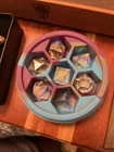 Beautiful set of dice. The prismatic ones with the wyrmwood logo are glass and absolutely gorgeous comes with a cool soft shell muticolor case. The other are a rainbow style with sparkling and heart/floral art floating within. Also comes with a case. Those ones aren't glass, so make for a good all purpose set to play with, especially when you don't have a table top die container to play on or a suitable surface. The wyrmwood glass need to be handled with care or they will surely crack or break! In amazing condition! They were barely used by the prior owner. Also comes with the wyrmwood tables top dice tray. Has some marks but overall in solid shape and is a must have for the glass prismatic dice!