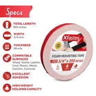 XFasten Double Sided Tape Foam Mounting Tape, 3/4-Inch x 350-Inch Product Overview ABOUT THE XFASTEN DOUBLE-SIDED FOAM MOUNTING TAPE The XFasten Double Sided Foam Mounting Tape is an efficient exterior and interior mounting tape that can mount objects up to 3 pounds together per square inch of tape in a long term basis. It works on both even and uneven surfaces. Where it shines is on exterior use where it performs better compared to other leading brands on textured, rough, and uneven surfaces. Read more COMPATIBLE WITH TEXTURED DRYWALL CONCRETE WOOD CARTON Read more WHERE CAN YOU USE THE XFASTEN DOUBLE-SIDED ACRYLIC MOUNTING TAPE? Perfect for layering on greeting cards, DIYs and other arts and crafts projects. It adds an extra dimension to greeting cards, taking your art into a whole new level.Mounting photos and poster on the wall. Mounting bathroom accessories and home decors. Mounting light objects such as nameplates and exterior signage on bricks, concrete and other rough surfaces. Can be used as a noise cancellation device in between doors to prevent loud banging noise when the door is closed. OTHER USEFUL FEATURES Residue-Free Strong Adhesion High Durability High Weight Holding Capacity Read more KEY FEATURES PERFECT SOLUTION TO MOUNT OBJECTS ON WALLS The XFasten Double-Sided Foam Mounting Tape is a versatile replacement for bolts and screws on even and uneven surfaces for interior or exterior use. WORKS ON VARIOUS SURFACES With its unparalleled versatility, the XFasten Double-Sided Foam Mounting Tape fares well on uneven, irregular or highly textured surfaces such as cement, brick and concrete.. IDEAL FOR CRAFTERS If you love arts and crafts, the XFasten Double-Sided Foam Mounting Tape is for you. It works well for layering rubber stamp projects, cards, invitations and other arts and crafts projects. EASY TO INSTALL The XFasten Double-Sided Foam Mounting Tape is an instant and mess-free tape due to its easy-to-peel backing and high sheer resistant adhesive. Read more XFasten Double-Sided Acrylic Mounting Tape, 1" x 450" XFasten Double-Sided Foam Mounting Tape, 1" x 150" XFasten Double-Sided Foam Mounting Tape, 1/2" x 36 Yards XFasten Double-Sided Mounting Dots 1" (Pack of 80) XFasten Double-Sided Mounting Squares 1 " (Pack of 80) XFasten Double-Sided Tape, 1.5" x 15 Yards Color Clear White White White White White Material Type Acrylic Adhesive Compressible and Conformable Urethane Foam Compressible and Conformable Urethane Foam Compressible Foam Material Compressible Foam Material Poly-carbonate Film Tape Item Weight 10.4 ounces 1.6 ounces 4 ounces 0.8 ounces 0.64 ounces 0.8 ounces Features Versatile replacement for bolts and screws on even and uneven surfaces for interior or exterior use. Ideal for mounting accessories, photos, paintings, frames and decors in the kitchen or bathroom. Works well for layering rubber stamp projects, cards, invitations and other arts and crafts projects. Fares well on uneven, irregular or highly textured surfaces such as cement, brick and concrete. Instant and mess-free bond due to its easy-to-peel backing and high sheer resistant adhesive. Details Manufacturer: XFasten Brand: XFasten Item Weight: 1.76 ounces Product Dimensions: 350 x 0.75 x 0.75 inches Item model number: OP-6163 Is Discontinued By Manufacturer: No Material Type: Foam,Rubber Number of Items: 1 Manufacturer Part Number: FMT350 Quality Products Have peace of mind knowing that your order will arrive original factory sealed packaging. That means that you'll have the full force of the manufacturer's warranty to protect your purchase. Fast and Free Shipping You're already purchasing the item. Why pay additional for shipping, especially slow shipping? We get your order shipped out and delivered to your doorstep as quickly as possible. Commitment We are committed to making sure that you leave this transaction satisfied. That means having access to real people that get your questions and concerns answered quickly. Give us a shot and we will make sure that you will look to us again!