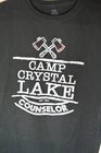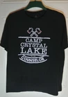 This XL T-shirt by Pop Threads features a crew neckline and a graphic print of the Camp Crystal Lake Counselor design in black color. Made of 100% cotton, the shirt is lightweight and preshrunk, suitable for all seasons. With a theme inspired by the Friday the 13th horror franchise, the shirt includes elements like Jason Voorhees, Camp Blood, and slasher films. The design also incorporates humor and novelty with an antisocial pattern, making it a unique and eye-catching addition to any horror fan's wardrobe.