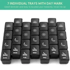 4 Times A Day Organizer is your great partnerThe weekly box case helps you remind to take the right right dose at the right time.Portable Size with Large Capacity.7 Day case comes with 28 large compartments for week, can storage 12 fish oils or 13 large vitamins in each compartment for your daily useProduct Information:Material: BPA Free Food PPEach Compartment Size : 6.75"x 1.25 "x 1.25"Storage Outer Container Size : 10" x 7.1 " x 1.5"Lifespan: 20 YearsTarget Audience:Elderly PeopleForgetful PeopleMultiple-medications-taken PeoplePeople not taking medicine properly and regularlyCAUTION:- Clean before your first usage.- DO NOT wash with a dishwasher.- Keep out of reach of little children and pets.- Keep the medicine case away from high temperatures and humid environments. Extra Large Capacity Organizer - Can storage 12 fish oils or 13 large vitamins in each compartments. Bpa Free - Our medicine organizers are made of food plastic, safe to take supplements ll never pop-open and dump out in your purse. Portable Size For Traveling - You can take or more trays in your perse when going out Ultra Durable - This dispenser is over 1 mm thick, you are expected to use it for over 5 years.