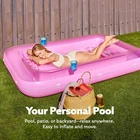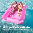XL Inflatable Tanning Pool Lounge Float, 85" x 57" Extra Large Sun Tan Tub Adult Pool Floats Raft for Pool Sunbathing Suntan Blow up Pool Lounger Tanning Bed Floatie for Adults, XL-Pink INCLUDES. Packaged includes 85” x 57” extra large inflatable suntan pool float featured with Inflatable base for extra comfort, drink holders, removable headrest, wrap around rope EXTRA LARGE. 85” long and 57” wide extra large size could hold up to 2 people, enjoy your summer tanning along or share sunbath with your friend or family member. PREMIUM QUALITY. This Tanning Lounge is made of thick, heavy-duty and UV resistant PVC with thickness to 0.3mm. BUILT FOR COMFORT. Our Tanning Pool is built with a removable pillow and ribbed air cushion base. The pillow provides your neck and back additional support, and the ribbed air cushion base provides you extra comfort lounging sun tanning experience. ADDED STABILITY. Our pool bed float has great integrated pad eyes with wrap-around grab line for maneuverability. Tie to other floats or the deck and enjoy! KEEP COOL AND RELAX. Fill this pool lounge raft with water to turn it into a suntan tub, lay and tan in the water to prevent getting overheated. Clear top design to keep you and your lounge cool, enjoy the sunbath and relax. 2 CUP HOLDERS. Featured with cup holders, bring your beverage when you enjoy the sunbath tanning.