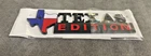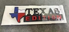 The XL TEXAS EDITION Emblem Badge is a glossy black emblem featuring red, black, and blue colors. It is designed to be a universal stick-on accessory for the tailgate of a vehicle. This emblem adds a custom touch with its vibrant colors and glossy finish, making it a stylish addition to any car or truck.
