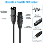 Product Features: Professional High-Quality: Our XLR cables can be effective in shielding 99% of the clutter and static interference signals, eliminating noise , and ensuring high-fidelity sound quality. Durable & Flexible PVC Jacket: Good thick and flexible, no worry of damaging it due to bending(With a 10000+ bend lifespan ). Self-locking Design: There are two self-locking designs on each connector at the ends of the cable, only when you press the unlock button, then the cable disconnect to ensure the stability of the connection. Stronger Connection: Our XLR microphone cable uses heavy-duty zinc alloy housing, pure copper silver-plated XLR pins, self-locking male-to-female connector design, these XLR speaker cables can provide a stable connection between devices with an XLR interface, easy plugging, and unplugging. Wide Compatibility: Designed for equipment with 3-pin XLR connectors such as microphones, stage lighting, DMX lamps, mixing boards, power amplifiers, studio harmonizers, speakers, patch bays, and so on. In addition, these microphone cables are widely used at stage speakers, club stages, KTV, and home theater. Package Included: 1-5 10/16.5/26FT Cables Buyer Note: If you are satisfied with our service, we appreciate you leaving us a positive feedback and 5 star rating review! Your opinion is important to the success of our business. If you are not satisfied with the product or have not received the product for more than 35 days, please contact us to resolve, we will do our best to solve. We are sure to come up with a satisfactory solution. Please contact us first before leaving cold feedback or good feedback of 1-3 stars and opening the case. We'll do our best to solve your problem. Because we believe that everything can be solved through communication. Thank you very much!