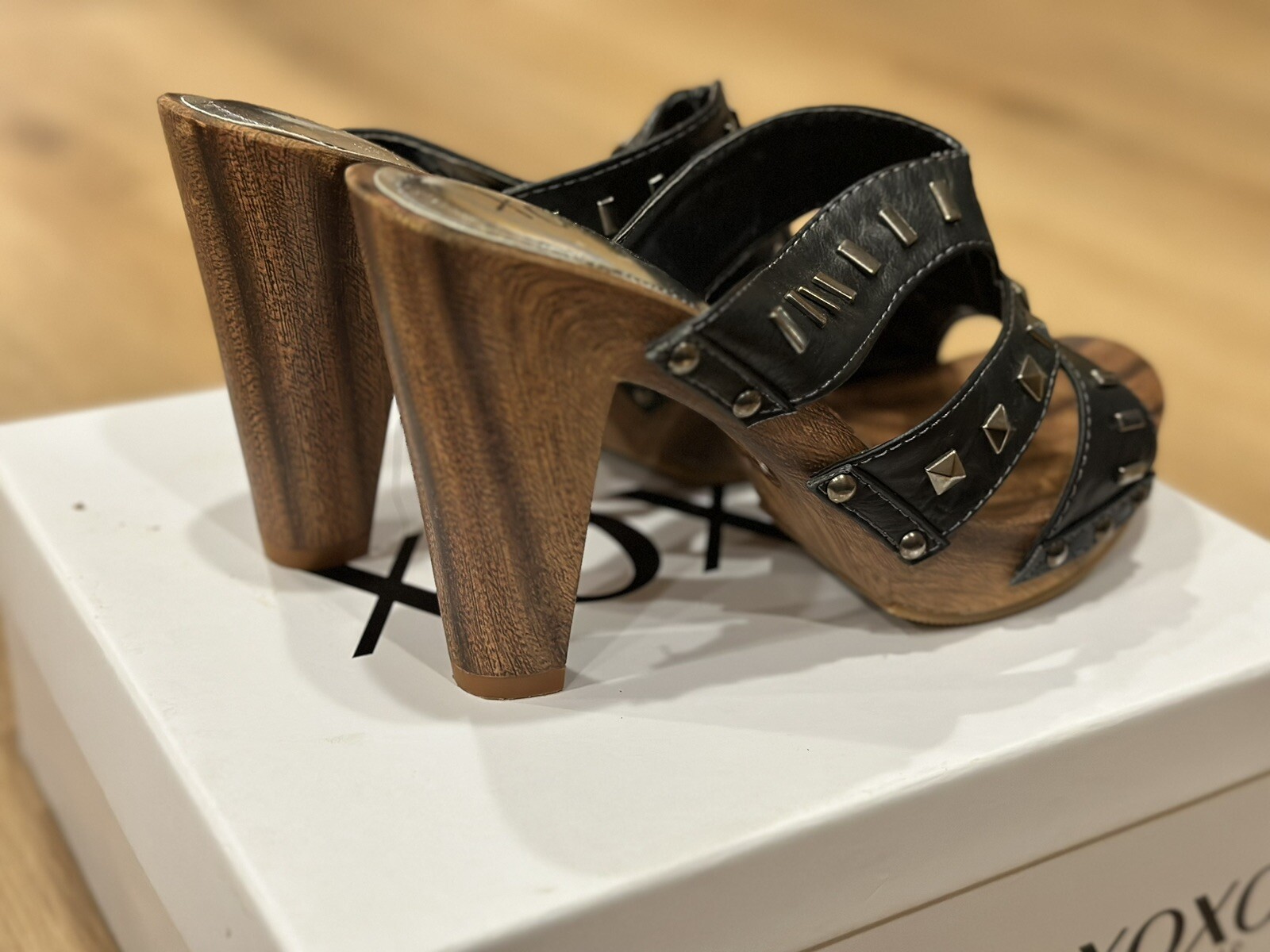 Elevate your shoe game with these stunning XOXO Delphine Studded Heels. These strappy heels feature an open toe design and a mid-height heel, perfect for any occasion - from parties to casual outings. The adjustable buckle strap ensures a comfortable fit, while the black faux leather upper material gives a sleek and stylish look. The heels are adorned with stunning studded accents, adding a touch of edginess to your outfit. These shoes come in a UK size 5, US size 7.5, and EU size 38.5, and are perfect for any fashion-forward woman. Add these XOXO Delphine Studded Heels to your shoe collection today and step out in style.