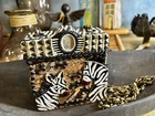 XRARE piece! SEE VIDEO to appreciate the design and beauty of this rare piece. This is a rare and limited edition Mary Frances crossbody purse with a zebra pattern in black and white. Small zebras are in the pattern with a map that is within the tan/brown portion -- very unique and intricate. Jewels throughout. The top lifts open to reveal a small interior lined with black wood. The bag measures 6 inches in height, 3 inches in width, and 6 inches in depth, with a 24 inch metal crossbody strap in black. It is suitable for travel, parties, casual and formal occasions, workwear, and business. The bag features a chain strap, cross-body strap, and is handmade in France. Absolutely a one-of-a-kind! Made in France. This is a vintage piece and is in fantastic vintage condition. Center circle looks as if there may/may not of had an embellishment. Embellishments of beads are gorgeous and very detailed. You have great taste if you have stumbled onto this Xrare piece of Mary Frances. You will receive the Mary Frances purse within the pictures. The other items you may see in the photos are items that will be listed in my Ebay Shop either this week or next week. YouBeYou LLC So, you are getting a sneak peak of what is coming up! :) If you have any questions even after you have purchased the item --- I am here for you to answer any questions that you may have! I strive to work diligently with every buyer to ensure they are a satisfied buyer, so please contact me anytime. This is a pre-owned item and I take great care to accurately describe the item but please see the pictures for full details. While we do our best to list every item in detail, these are vintage and pre-owned items, and some flaws are to be expected. Please see all photos/ video as they are a large part of the description of our items. Items come from a smoke-free environment. Each item is described in accurate detail with multiple measurements and various photos at different angles front and back, side to side, top and bottom. I have additional similar items that I have yet to list that you may be interested in. Feel free to follow my store ( YouBeYou LLC ) to see those when posted. Please see all photos/ video as they are a large part of the description of our items. I strive to make every purchase a pleasant experience. Please feel confidence in you purchase that I'll make every effort to correct any issues that may arise. If used, there are always some signs of wear -- well, because it is used, vintage, or antique. Most items are used -- Each item is inspected for quality. It is very important to us that you have a happy Ebay experience! Thank you for supporting a small business like ours! (Note: pictures may include measurements, and some have a video.)