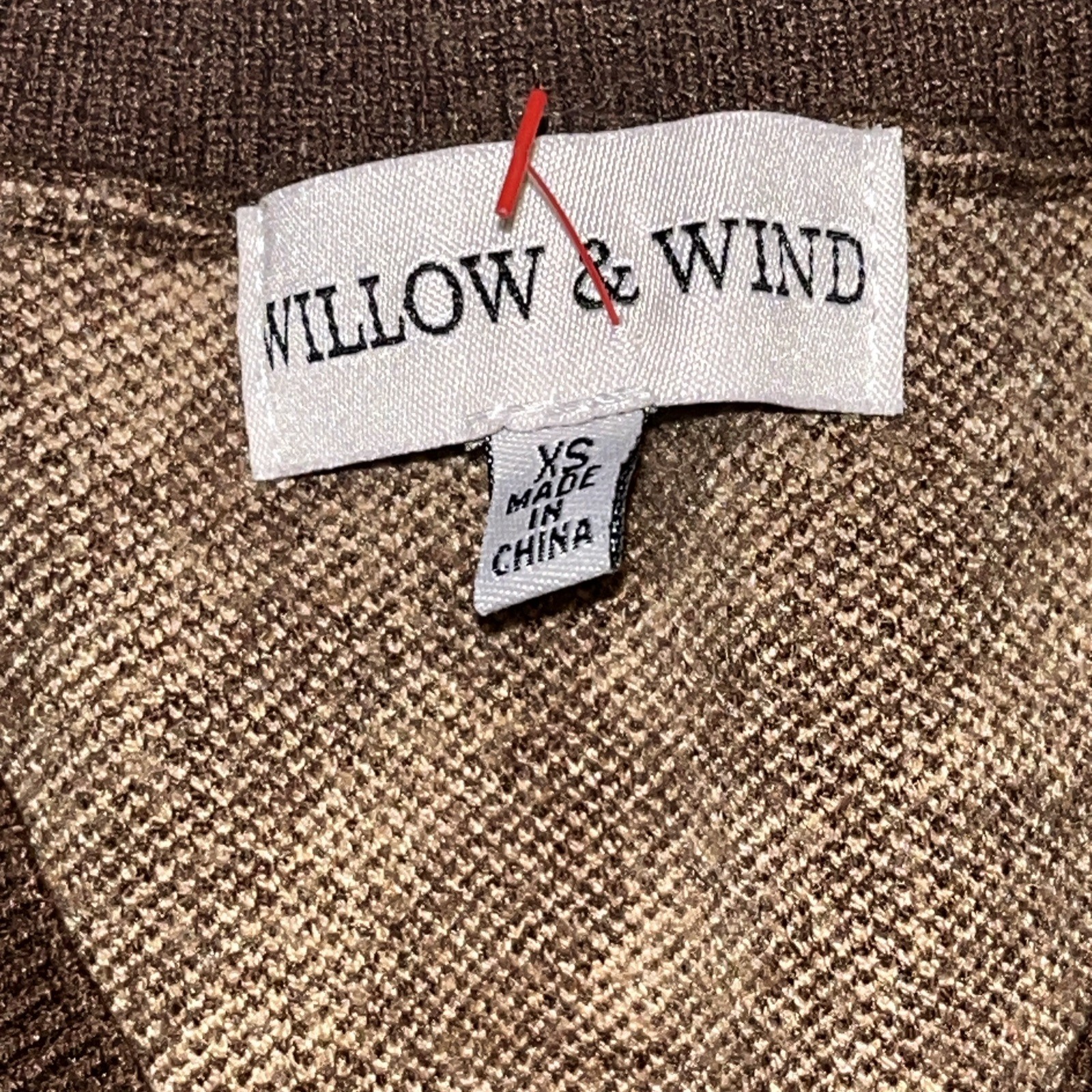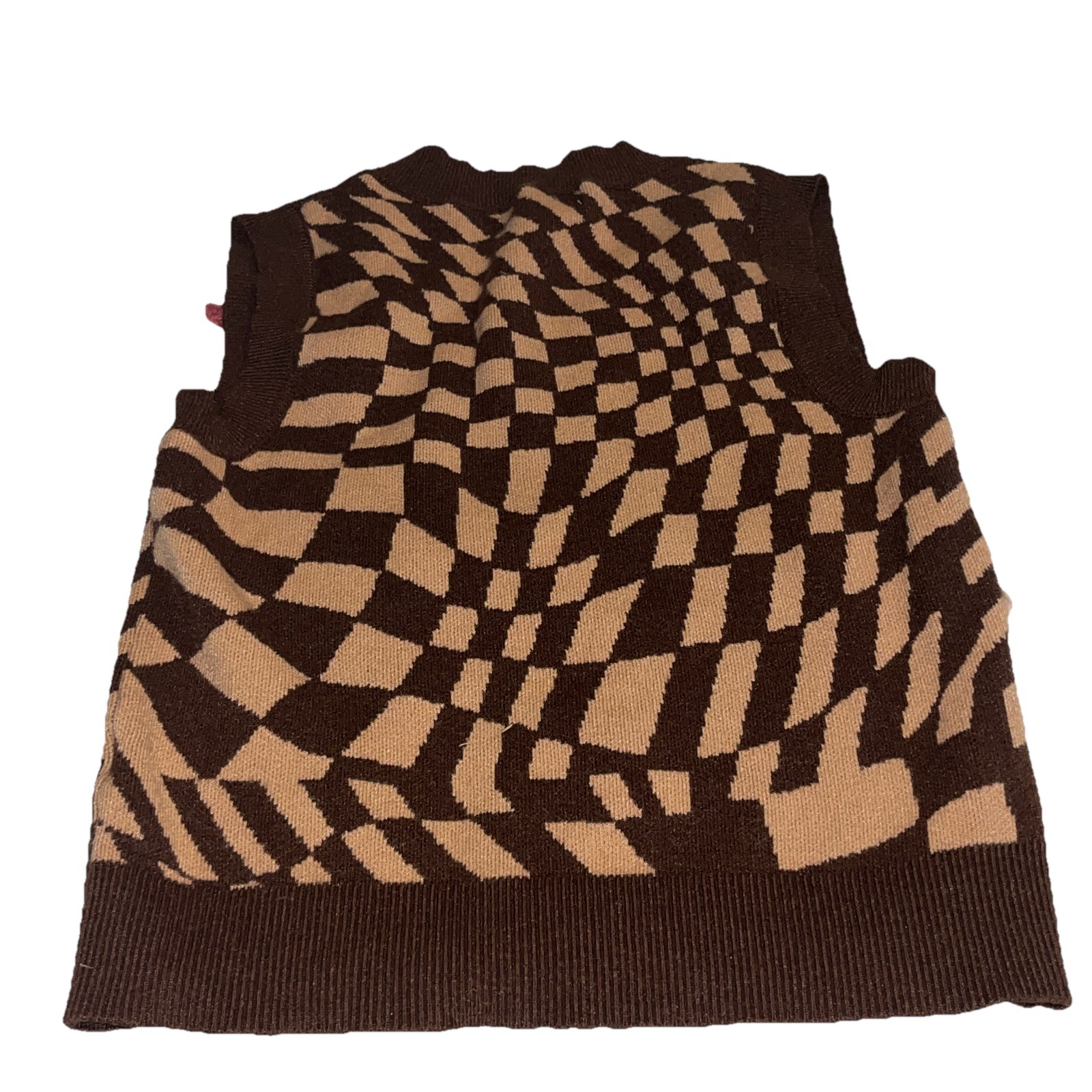 Size XS! The Willow & Wind Women's Brown Tan Wavy Checkered V-Neck Sweater Vest is a stylish and versatile piece perfect for the fall season. Made from a blend of polyester, nylon, and rayon, this knit vest features a sleeveless design and a flattering V-neckline. The brown color and wavy checkered pattern add a cute and trendy touch, making it ideal for casual occasions. The brand, willow & wind, is known for its 90s-inspired style, and this vest is sure to become a staple in any woman's wardrobe. Seller item number 13