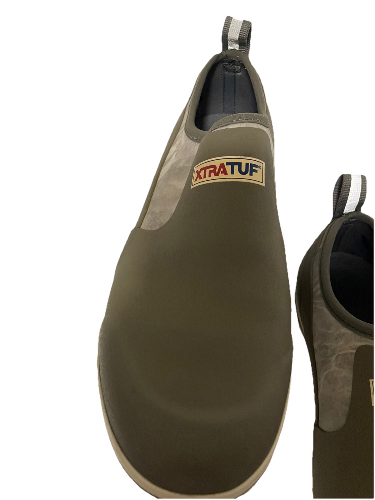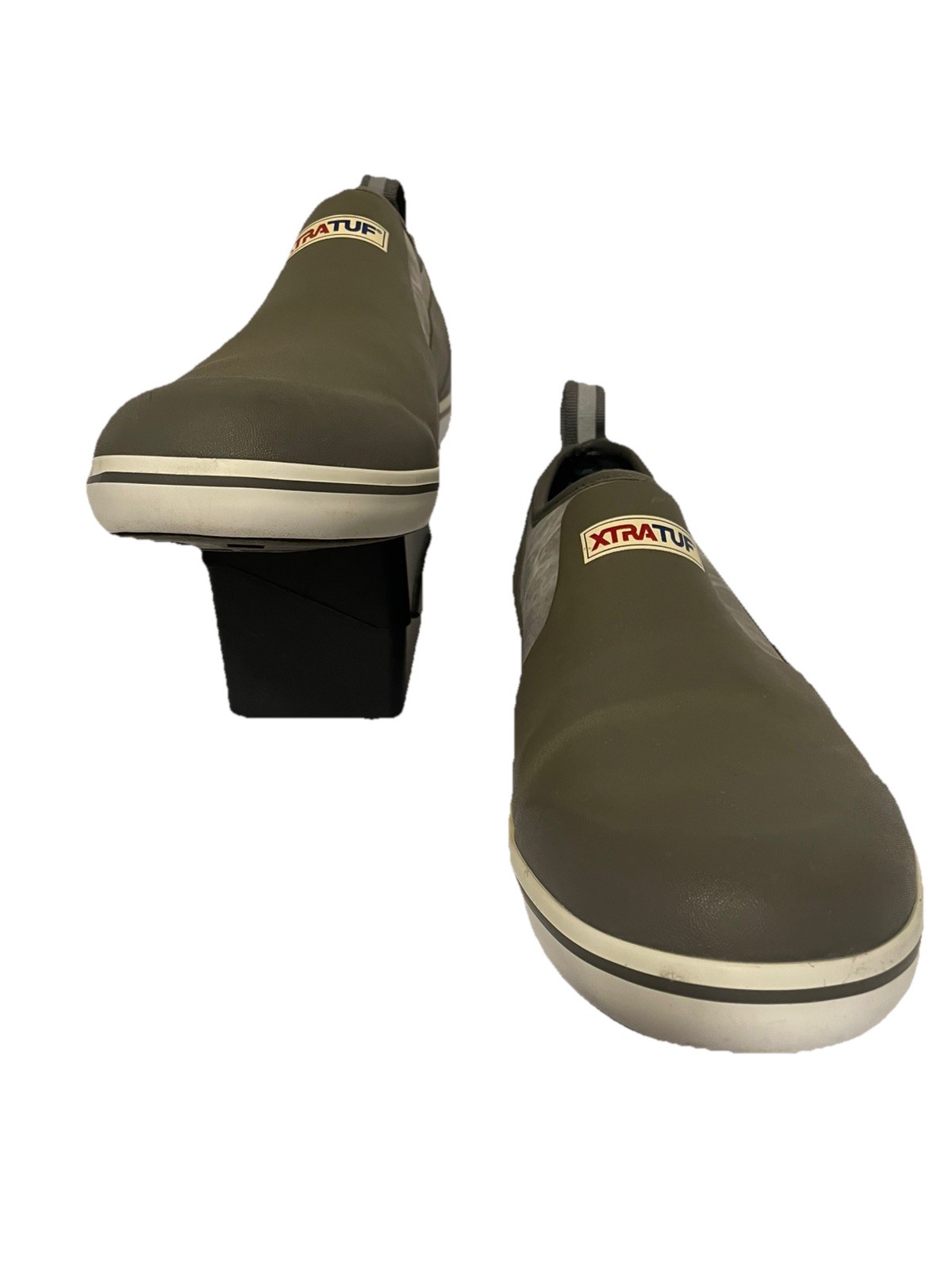 The XTRATUF Men's Size 12 Slip-On Deck Shoe in Olive Green is a versatile and stylish casual shoe perfect for everyday wear. These boat shoes feature a slip-resistant design, making them ideal for various activities. With a comfortable slip-on style and the trusted Xtratuf brand, they make for a great gift for any man looking for a durable and fashionable footwear option in a classic olive green color. Note : These were my deck shoes. I was invited to go out deep sea fishing for 1 day off Cape Canaveral Florida. It was one of the greatest day's ever. The shoes are in excellent condition and are great when doing some serious fishing.