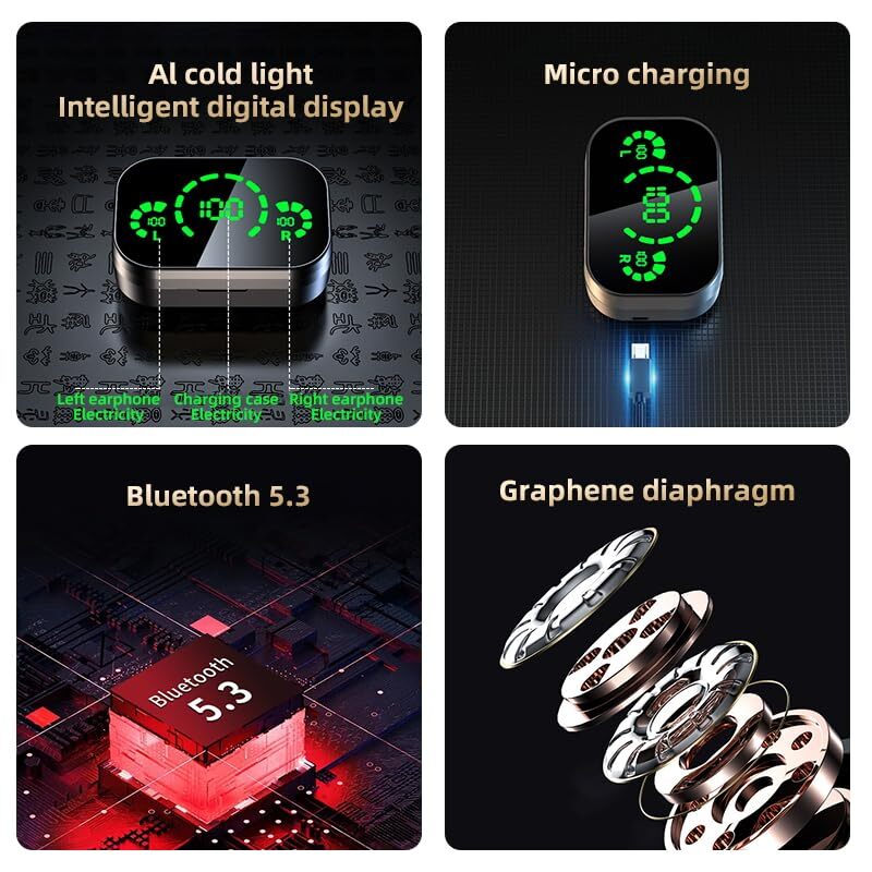 XYGCACO Wireless Earbud, True Wireless Earbuds/Headphones Bluetooth, LED Charging Case, Bluetooth 5.3 with Built-in Mic,Long Playtime for Sports, Work, Travel Bluetooth 5.3 Chipset TWS Earbud: It provides faster and more stable signal transmission within 32 feet. Immersive Sound Long Playtime: a full 4-5 hours of listening, while the charging case for Bluetooth earbuds extends that to 20 hours One-Step Pairing: Simply remove these headphones from the charging case and it will automatically turn on and connect IPX7: suitable for sports to prevent water Intelligent Touch Control: By touching the Bluetooth earphones to answer/hang up the phone, play/pause, Previous song/next song, volume up/down, etc.Very simple and convenient to use Shipping We offer FREE shipping on all orders! We ship within Three business days of payment, usually sooner. We use a selection of shipping services such as UPS, FedEx, USPS etc. We only ship to the lower 48 states, no APO/FPO addresses or PO Boxes allowed. Local pickups and combined shipping options are not provided at this time. Return You can return a product for up to 30 days from the date you purchased it. Any product you return must be in the same condition you received it and in the original packaging. Please keep the receipt. Payment We accept payment by any of the following methods: PayPal Please pay as soon as possible after winning an auction, as that will allow us to post your item to you sooner! Feedback Customer satisfaction is very important to us. If you have any problem with your order, please contact us and we will do our best to make you satisfied. Contact Us If you have any queries, please contact us via ebay. We usually respond within 24 hours on weekdays. Please visit our eBay store to check out other items for sale! Thank you for shopping at our store.