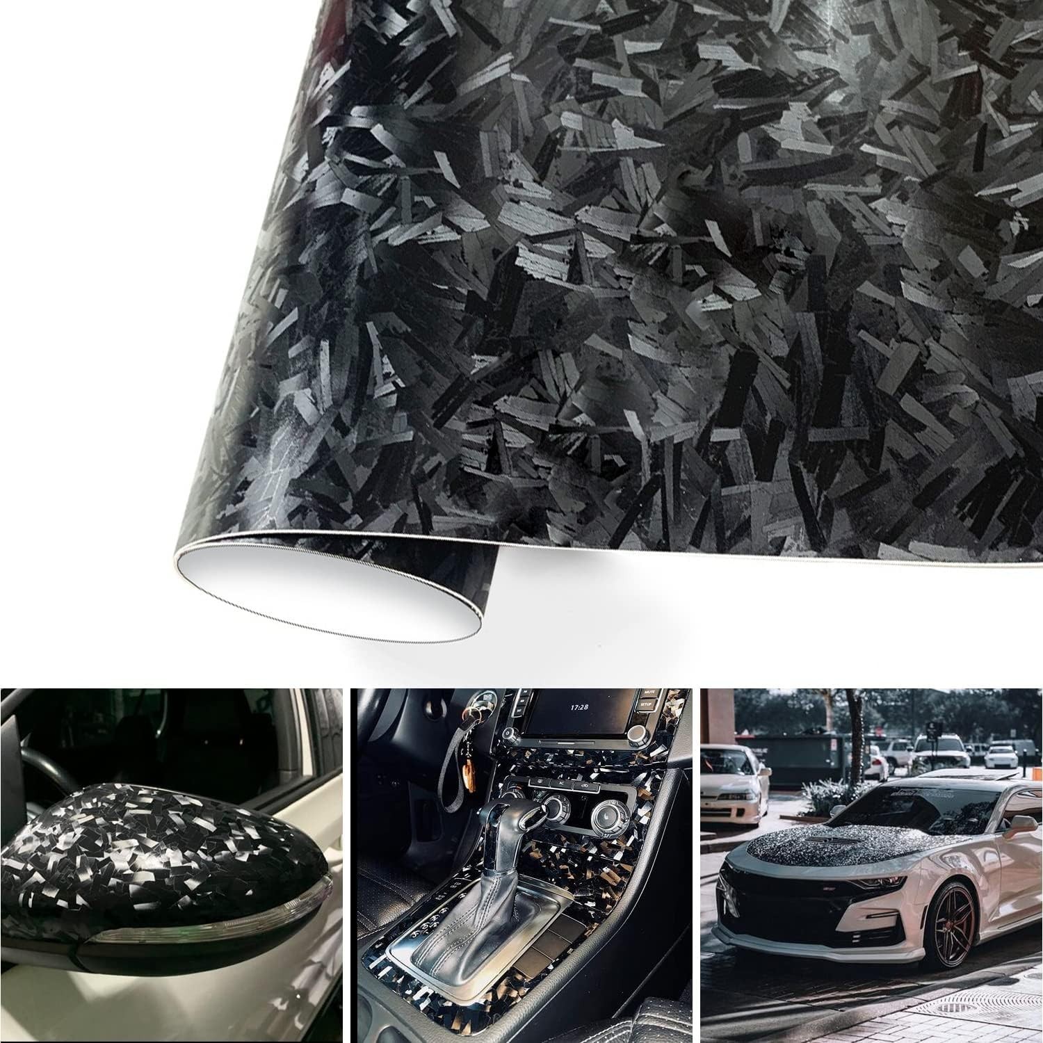 XhuangTech Forged Carbon Fiber Vinyl Wrap Film,Carbon Vinyl Wrap Adhesive Motorcycle Stickers Decals,Anti-Wrinkle Bubble Free Replacement Car Sticker DIY Interior Exterior (17.71"x59.84") Product Details Size: 17.71"x59.84" Brand: XhuangTech MPN: ST-F737-US UPC: Does not apply EAN: Does not apply Brand: XhuangTech Size: 17.71"x59.84" Color: Black Vehicle Service Type: Motorcycle, Car, Truck Automotive Fit Type: Universal Fit Brand: XhuangTech Size: 17.71"x59.84" Color: Black Vehicle Service Type: Motorcycle, Car, Truck Automotive Fit Type: Universal Fit Manufacturer: XhuangTech Model: Car vinyl wrap Item Weight: 9.9 ounces Package Dimensions: 18.27 x 1.65 x 1.65 inches Item model number: ST-F737-US Manufacturer Part Number: ST-F737-US Date First Available: April 26, 2023 Excellent Vinyl WrapXhuangTech vinyl wrap for cars have been redesigned with an incredible forged carbon finish that is incredibly realistic.The low-tack, pressure-sensitive adhesive provides an unparalleled level of playability and speed, especially on larger installations.The unique air-release adhesive lining features a self-collapsing diamond pattern that greatly reduces lifting and bubbling. Incredibly EffectThis special look car vinyl wrap with an incredibly realistic black carbon steel finish that is perfect for a variety of automotive or architectural detailing projects. The wrap is designed to black out your vehicle's exterior to achieve a panoramic effect. Last LongerThis auto vinyl wrap is made with premium quality UV-resistant automotive vinyl that waterproof, anti-scratch, heat-resistant, and dustproof. The black car wraps feature a shiny carbon steel textured finish and are stretchable, which means they won't tear during installation. They have an indoor life of over 7 years and an outdoor life of over 5 years. Widely UsedThe material of this car vinyl wrap is soft and flexible, allowing it to conform to contours and bends easily. The high gloss black vinyl wrap roll can be applied to your car's interior and exterior decorations, door handles, glass, cellphones, laptops, motorcycle parts, metal parts, and just about any relatively non-porous surface. It is available in assorted widths to meet your individual needs. Warm SupportXhuangTech offers professional technical support with reliable quality and a professional service team. If you have any questions about the quality or usage of the product, they will solve the problem for you within 24 hours. Features:Water Resistant and UV Protected Invisible Air-Release Channel, easily get rid of bubbles during installation Strong self adhesive, eliminate bubbles, peel and stick application. Glossyand smooth finish Easily Stretchable with heat Easy to clean with soap and water Long lasting for approximately 10 years indoor use and 5 years outdoor use It can also be applied onto most smooth painted or metalized surface such as cell phone, laptop, home appliances, table and even cabinet and much more. Description:Material: PVC Installation Temperature: 60F to 80F (16C to 32C) End Use Temperature: -65F to 225F (-60C to 107C) Notes:If you see any creases from unrolling the roll, this WOULD NOT affect the item when you apply to your car! We are not responsible for creases from unrolling the roll because that is the nature of the roll when you unroll the item or when the item rolled for too long (think about when you fold your clothes for a long time, it will have crease/wrinkles) Package Includes:1 roll DIY Car Body Films