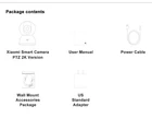 The following are the parameters of Xiaomi Smart Camera PTZ 2K Version: Note: When adding cameras, please select Chinese server in mijia settings. Xiaomi Smart Camera PTZ 2K Version With super clear 2K image quality and updaraed AI 3 megapixel | 3F1.4 large aperture | Full colour in low-light | AI human detection 2K ultra-clear HD*, FULLY UPGRADED IMAGE QUALITY The Xiaomi Smart Camera PTZ 2K Version uses ultra-clear HD technology to capture more detailed images. Enjoy an improved visual experience with fully upgraded 2K ultra-cleae HD technology, True clarity in every frame. *Standard HD resolution: 1920 x 1080=1080p (2 megapixel); Upgraded ultra-clear HD resolution: 2304 x 1296= 1296p (3 megapixel) Clear and Crisp Video With 2304 x 1296 megapixels full HD video, the camera produces sharp and smooth video footage. F1.4 large aperture for clear picture even under low-light conditions The F1.4 large aperture lens lets significantly more light enter, capturing detailed images even in low-light conditions. Upgraded 6P lens for a higher-quality display The fully upgraded lens effectively reduces light refraction for clearer, more detailed images Enhanced infrared night vision for clear images even in low-light The 940-nm infrared light with no visible red glow leaves you and your family to sleep undisturbed; features a high-sensitivity image sensor, and displays colour video in low-light conditions. AI Human Detection Effectively filters out false alarms With a combining of deep-learning applocations, as well as algorithm and network optimisation, AI effectively filters false alarms for improved accuracy. 360° pan-tilt-zoom panorama for all-round monitoring with no blind spots Features a dual-axis pan-tilt-zoom motor, with a 360° horizontal viewing angle and 108° vertical viewing angle. Two-way voice calls in real-time, so you can "visit home" whenever you like Supports two-way real-time voice calling that feels like a face-to-face conversation, so you can chat with your loved ones no matter where you are. Seamless viewing that saves storage space New-generation H.265 video encoding technology enables seamless viewing under normal nerwork conditons, saves bandwidth, and provides a clear and detailed pirture. H.265 videos require only 50% of the storage space required for traditional H.264 videos at the same pixel and data rate, allowing you to save half the storage space. Three storage methods for increased security Supports three storage methods, a local Micro SD card, NAS devices and the cloud, so you can back up your data with peace of mind. Local Micro SD card* Up to 256 GB of storage Network attached storage Historical video back-ups from the Micro SD card. Free 7-Day Rolling Cloud Storage of Motion-Triggered Video Clips* Supports remore viewing on multiple devices and 16x speed playback. Supports remore viewing on multiple devides* including smartphones and tablets. 1x/4x/16x speed playback via the Mi Home/Xiaomi Home app for video history stored on the Micro SD card. Save time and effort with quick and easy browsing. BSI Kitemark™ certified* The data security you can trust Fully encrypted to protect your privacy Fully encrypted data transmission AES-128 encryption via the cloud Customisable sleep times Supprts standard and inverted mounting, with 180° screen rotation TIncludes screw-in base accessories for easy installation*. For inverted mounting, rotate the screen in camera settings to display the picture normally. Enalbe your security camera in three simple steps 1. Download the Mi Home / Xiaomi Home app 2. Power on the Mi 360° Home Security Camera 2K 3. Open the app, search for and connect to the device to use it normally *Images are for illustrative purposes only, image clarity may vary depending on the display used. *Voice control function available on smart speaker and smart display devices that work with Google Assistant or Amazon Alexa. *Micro SD card sold separately. *Records about 10 seconds per video. The camera can be motion triggered every 3min - 30min.*Images are for illustrative purposes only, image clarity may vary depending on the display used. *Supports devices with Android 4.4, iOS 9.0 and above. *To ensure that your camera operates normally, please do not place in an overly humid environment, or any other location where the camera may be at risk of water damage. Spevifications: Product Name Xiaomi Smart Camera PTZ 2K Version Product Dimensions 115 x 78 x 78 mm Lens Angle 2304 x 1296 Power Input 5V=2A Working Tempereture -10℃-45℃ Aperture F1.4 Storage Micro SD card (up to 256 GB supported) Wireless Connectivity Wi-Fi IEEE 802.11b/g/n, 2.4 GHz Pacekage Contents: Xiaomi Smart Camera PTZ 2K Version X 1 User Manual X 1 Power Cable X 1 Wall Mount Accessories Package X 1 US Standard Apapter X 1 Payment Delivery details Returns Contact Us Feedback Payment 1.We accept PayPal only. 2.Payment must be received within 7 business days of auction closing. 3.We ship to your eBay or Paypal address. Please make sure your eBay and Paypal address is correct before you pay. Delivery details We try our best to ship out same day for payment cleared before 5.00 PM (Pacific Time) , Order placed on weekend or holiday will be shipped on Monday or next working day. Below is the approximate delivery time to different countries (just estimated, not guaranteed): 7-25 working days to buyer in USA. Returns 1.We offer 30 days return policy. Please contact us within 30 days from the date you receive your order if you have any issues with the product and want to return. 2.All items must be returned in the original packaging and you must provide us with the tracking shipping number, specific reason for the return, and your eBay ID. 3.We will refund you FULL WINNING BID AMOUNT, upon receipt of the item in its original condition and packaging with all components and accessories included, AFTER BOTH Buyer and Seller cancel the eBay transaction. Or, you can choose to get a replacement. Contact 