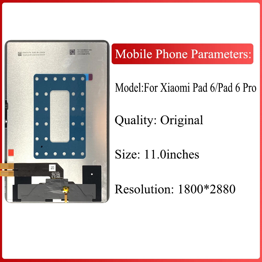 11" Original For Xiaomi Pad 6 LCD Screen Touch Panel Digitizer Replacement Repair For Xiaomi Mi Pad 6 Pro LCD Display 1. Compatible Model: For Xiaomi Mi Pad 6 / Pad 6 Pro LCD 2. Material: Original Display Screen 3. Screen Size: 11.0 inches 4. Resolution: 1800*2880 pixels 5. It is used to replace your broken, no working LCD display with a new one and make your lcd display work normally. 6. Our products are shipped to 220 countries and regions in the world ! 7. Tested strictly before shipping and 100% working well 8. Delivery within 1-2 working days (weekday) after payment confirmed 9. Excellent after-sales services If you want to install, please make sure to do the following first: 1. Update your Android system first; 2. Be sure to test before installation; 3. When connecting the ribbon cable for testing, the system needs to be restarted; 4. Ensure that there is no static electricity impact (tear off the surface film and cushion the bottom with bubble bags during testing) About Maintenance After the goods arrive, please check whether the products are intact.Test the product before installation. lf there is any problem with the product, please do not accept and feedback to us. (Only connect the LCD monitor to the motherboard for testing) If you encounter problems during the test, please shoot us a test video that shows the test process with the " Exclusive seal " Logo on the front and back of the product. Therefore, once the LCD display is installed, we will not be liable for any damage caused by human reasons!!! Display of screen details