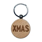Xmas Christmas Fun Text Engraved Wood Round Keychain Tag Charm