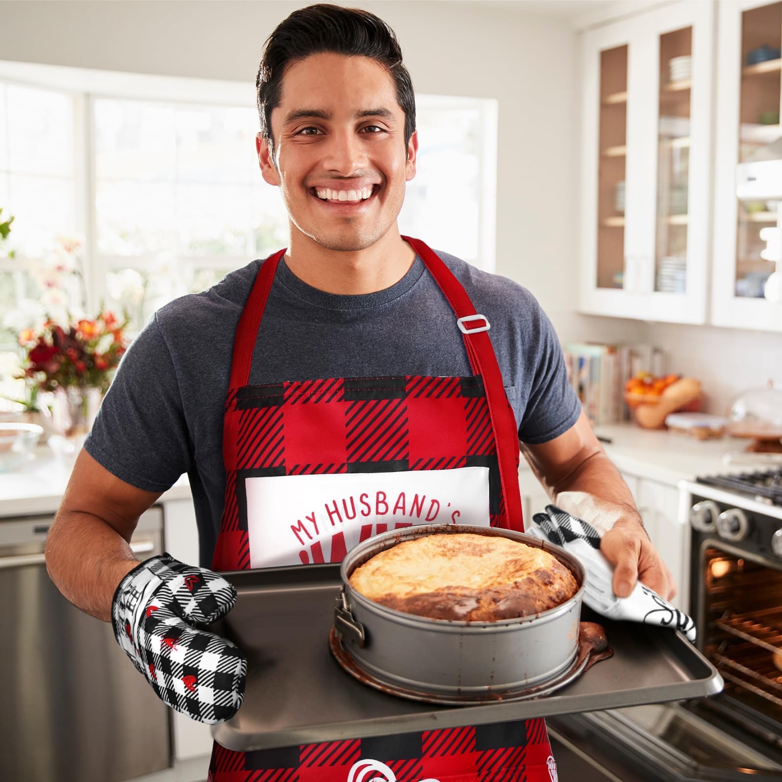 Features: The engagement gifts for couples are suitable for both experienced people and beginners, helping them keep clothes away from dirt and burns while baking. The wedding anniversary gifts are convenient for storage, also portable for you to carry out with, without taking up too much space. Specifications: Material: polyester material Color: as shown in the picture Package includes: 2 x Couples aprons sets 2 x Baking oven mitts 2 x Potholders 2 x Towels Notes: Manual measurement, please allow slight errors on size. The color may exist a slight difference due to different screen displays. Words printed on our products are only for decorating, not as trademarks, Our product is not suitable for sensitive skin. Test whether there is any allergy on a small part of your skin before use. Nice Combination: you will receive 2 pieces of Valentine's Day couples aprons sets, 2 pieces of baking oven mitts, 2 pieces of potholders and 2 pieces of towels; They are adequate in quantity, can well meet your daily use, and sharing needs Widely Applicable: the Valentine's Day aprons for women are suitable for couples, lovers to use, you can apply them for cooking, grilling, picnics, parties, camping and more, they are just what your lover need when he or she wants to show off their cooking skills Exquisite Design: the Mr and Mrs aprons sets are printed with heart warming words and interesting patterns, interesting and lively, the colors are elegant, can be machine washed; The apron is quite practical and will not deform, shrink or wrinkle easily, can cover from your chest to your knee, thus keeping you away from dust, oil, you can use it with confidence Fine Workmanship: the Christmas bridal shower gifts are made of polyester material, not easy to tear or fade, the apron is designed with large pocket and adjustable shoulder straps, suitable for most couples to wear, serviceable for long time use; The apron, mitt and potholders can bring you much convenience when you are cooking, gardening, picnic, camping and so on, keeping your clothes clean and tidy Kitchen Cooking Apron Gift Set: the Christmas gift for wedding couples can be applied as gifts for birthday, bridal shower, housewarming parties, wedding, engagement, anniversary, Valentine's Day to your wife, husband, girlfriend, boyfriend, lover, showing your love and care