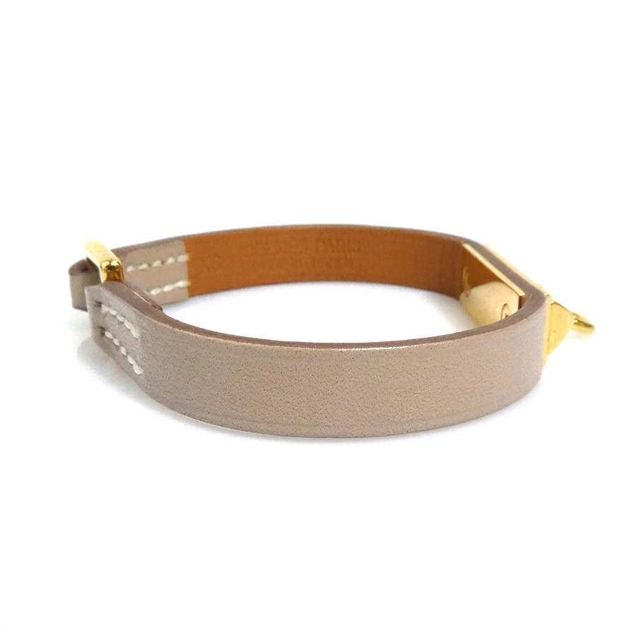 $ 285.67Y1207 Hermes Bracelet Jumbo H Etoupe Leather Metal Accessory Braided Ladies