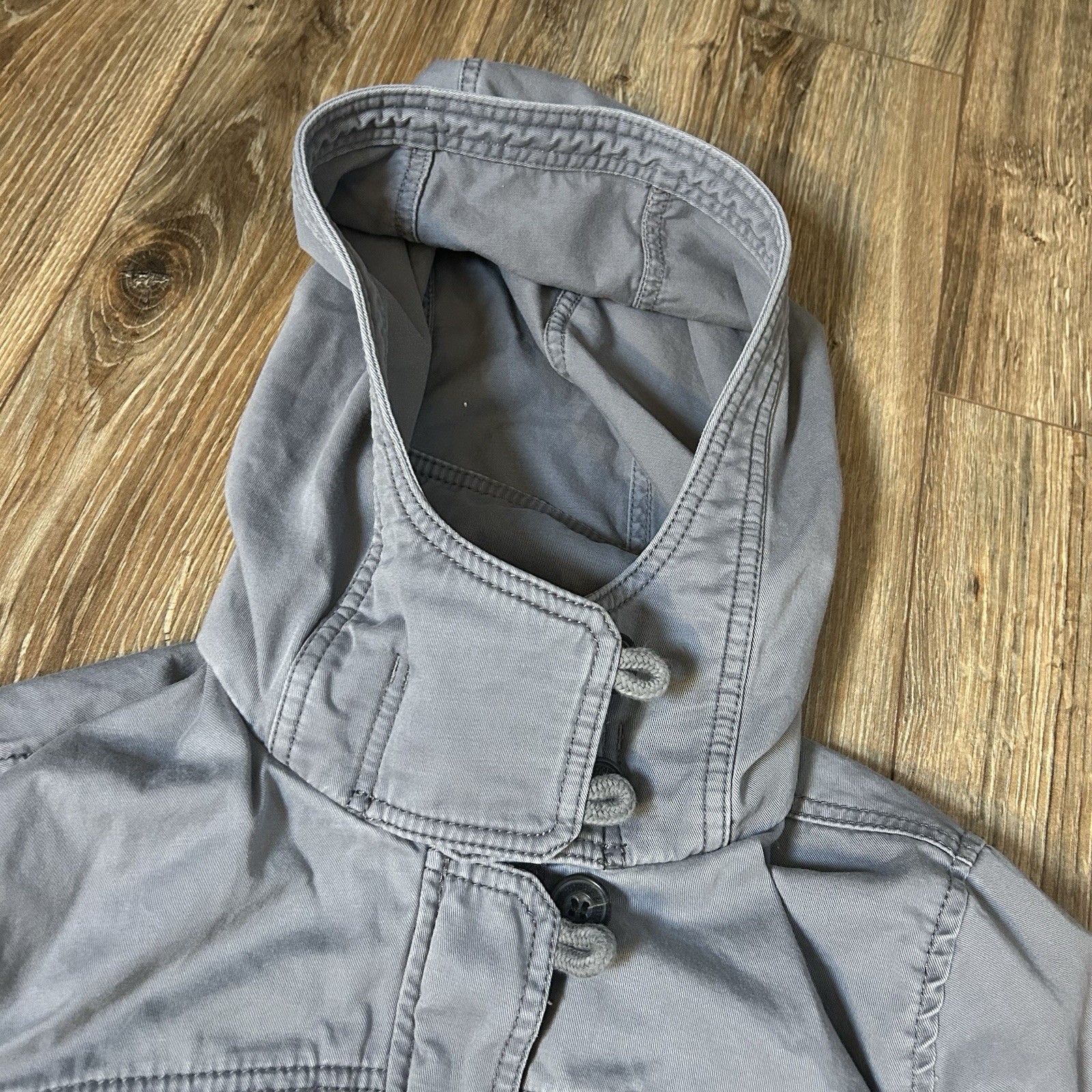 The Y2K Abercrombie & Fitch Utility Military Jacket is a stylish and versatile outerwear piece for women in size L. Made from cotton with a mid-length design, this lightweight jacket features a drawstring closure, long sleeves, and a hood for added functionality. The solid gray color and military theme add a trendy touch to the jacket, perfect for casual or travel occasions. With its multiple pockets, button accents, and 90s vibe, this jacket is a must-have for those embracing a hipster or bohemian style. Excellent Used Condition No noted flaws Measurements in photos Please ask any questions