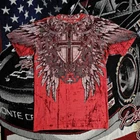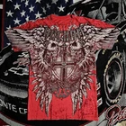 Y2K Archaic By Affliction All Over Print Double Sided T Shirt Cyber Skull Goth. Condition is Pre-owned - Excellent. Shipped with USPS Ground Advantage.