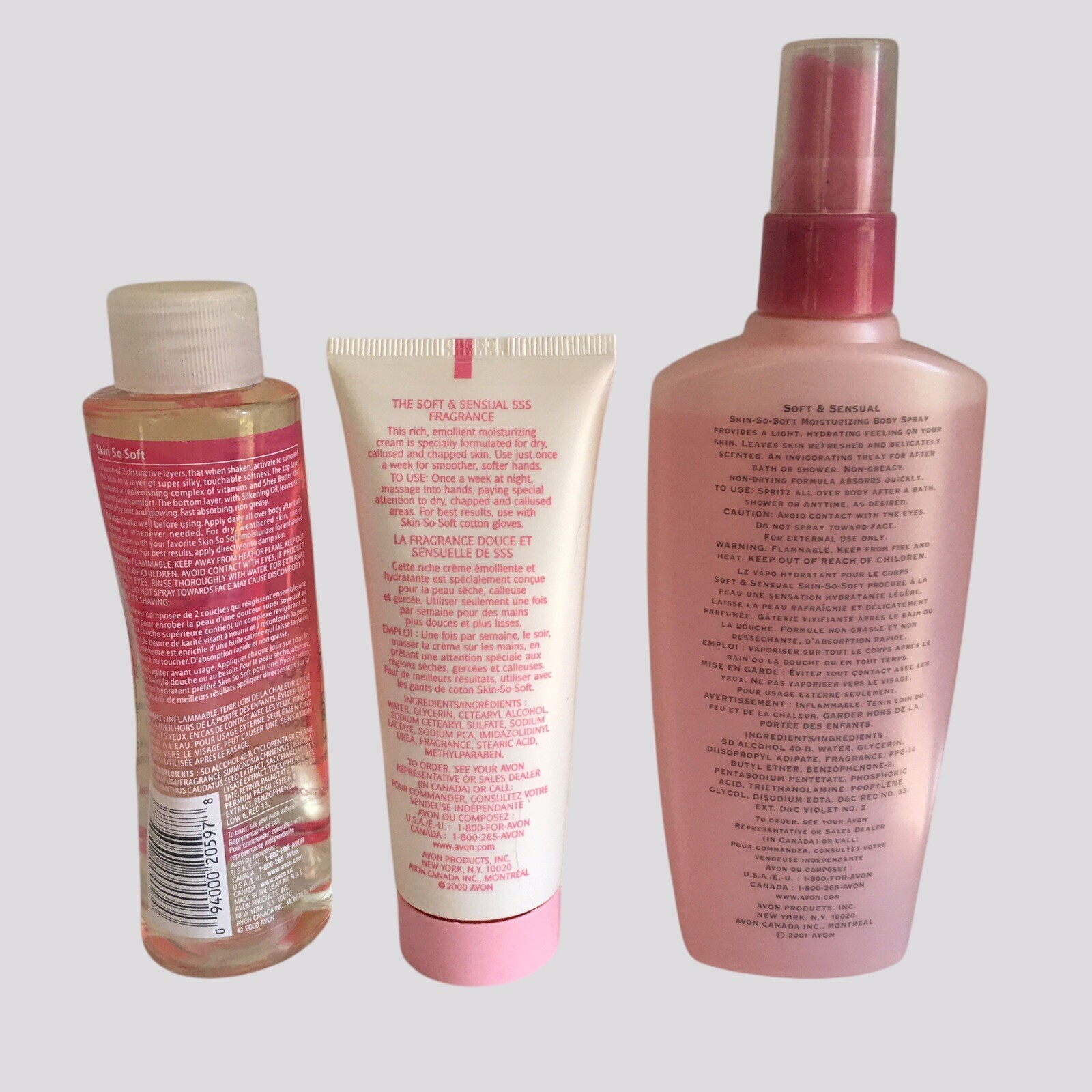 This offering is for: 1 (one) New/Retired 2008 AVON Skin-So-Soft Fusions Soft and Sensual Dual Softening Body Oil - 4.2 fl oz/125ml (sealed) 1 (one) New/Retired 2000 AVON Skin-So-Soft Soft and Weekly Hand Treatment Cream - 2.5 fl oz/75ml 1 (one) New/Retired 2001 AVON Skin-So-Soft Soft and Moisturizing Body Spray - 5 fl oz/150ml * These items will not be sold separately. * To keep the shipping cost low, these items will ship within 3-5 business days (Business days Mon-Fri) with USPS GROUND ADVANTAGE. * Expedited Shipping Option available at Checkout - Choose USPS Priority Mail Express shipping. Store Policy: Although our price is not the cheapest, our products are 100% authentic and genuine. Fragranced toiletries are AVON’s exclusive discontinued fragrances and formulas. Fragranced toiletries are American made. Retail boxes are not included. We aim to provide accurate and honest descriptions. All photos are an accurate representation of the products you would be purchasing. Please zoom into the pictures closely and judge the condition, size and content for yourself as our photos are a large portion of our description. Please read descriptions carefully. We try to describe everything in as much detail as possible. Any concerns about condition please address these concerns before purchasing. Due to export limitations and restrictions, items listed in the Health & Beauty category CANNOT be shipped with eBay International Shipping. * Please check items included in eBay's hazardous, restricted or regulated materials policy. To ensure a positive shopping experience for all our customers, returns ARE accepted. Item(s) can be returned in its original condition for a full refund within 30 days of receipt; however, if an item is damaged or defaced by the customer, or if a new item is returned opened, used or without the tag(s) attached, the refund amount will be reduced by up to 50% as allowable by eBay. By purchasing this item, you are agreeing to this store policy. All returns must go through eBay Returns Center. For any reason that you no longer want to keep your order, please open a return request through eBay to return an item. We will provide a return label free of charge. We abide by eBay’s rules and regulations for returns, if they are met, you will refunded. If you have any further questions about the return policy, please contact an eBay customer service agent. If there is an issue with your purchase, PLEASE do not leave negative feedback before you have contacted us to resolve any issues. If you have any questions or concerns, contact us directly by selecting the ‘CONTACT SELLER’ option. We will work with you quickly to resolve any questions or problems. If any of our national network of stores identify unreasonable, problematic transactions, we reserve the right to block any buyer from future purchases at our discretion. Buy with confidence and rest assured that you are dealing with an experienced store whose #1 priority is customer satisfaction. We list new items continuously, so add us to your favorites and check back often as you never know what you'll find here. Look around in our store as we have a huge selection of fragrances, skincare, makeup and other beauty products. THANK YOU for shopping with us! We want you to be happy with your purchase! PLEASE don't forget to leave positive feedback and give 5 stars in Seller's Rating. The information provided here is strictly to be used for informational purposes only. We do not represent or warrant the product details, ingredients and nutritional value, and any other product information to be accurate or complete. Manufacturers improve or change their product formulas, update labels, and change their packaging. It is recommended that you do not solely rely on the information described in this listing. For any specific product info or concerns it is recommended that you contact the manufacturer directly. If there are healthcare concerns or questions, please contact your licensed healthcare professional for advice. Attention VeRO members: We are not affiliated or endorsed by the companies mentioned in this listing. All trademarks and copyrights are acknowledged, they are only used for informative description of the items offered for sale. All items are authentic as evidenced in photos, legally acquired and owned, and hence covered under First Sale Doctrine. Unlawful VeRO removal of this listing WILL constitute perjury and result in legal action.