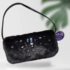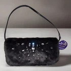 Y2K is back with this adorable, faux fur & rhinestone accented shoulder or clutch bag from Bath & Body Works! Part of their Beauty Avalanche collab, this “Ice Queen” model features sparkly crystal rhinestones & a super soft black faux fur finish. Item Details & Features: • New with tags • Secure fold over style with a strong magnet closure • Interior zip pocket • Logo embroidered on inner pocket • Shoulder strap • Measurements (approx.): 10” W, 5” H and 1.5” D