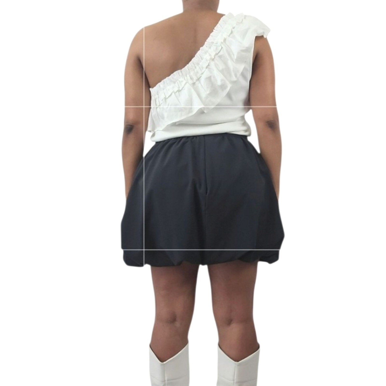 Scoop Black Bubble Y2K Mini Skirt. Size 8. Playful bubble silhouette with a unique flare. Great for both style and comfort. Dress this skirt up with heals or boots or with sneakers and a tee. Measurements are approximate. Skirt in good preowned condition. waist 16" length 16" material 54% recycled polyester 37% polyester 10% elastane stretch On the interior bottom hem N632 6/22 tags: Y2K fashion, coquette aesthetic, dark feminine, edgy, trending skirt, informal