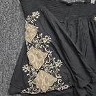 Theme: 80s, 90s, Bohemian, Denim, Hippie Accents: Embroidered, Ruffle Brand: Lucky Brand Closure: Zip Personalize: No Country/Region of Manufacture: China Material: Linen Pattern: Floral Size Type: Regular Department: Women Features: All Seasons Style: Peasant Skirt Length: Short Occasion: Casual, Party/Cocktail, Travel Type: Skirt Color: Black, Gold Season: Fall, Spring, Summer Rise: Mid Character: Hippie Vintage: No Size: L Handmade: No Fabric Type: Linen