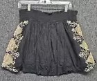 Y2K Black Linen Skirt Womens Large Mini Gold Embroidered Boho Hippie Peasant