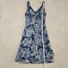 Y2k Babydoll Dress Empire Waist Womens Size 6 V Neck Blue Paisley Beaded Layered Summer Whimsy 00s Flirty Good pre-owned condition. Please see photos for measurements.