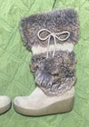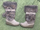 These Y2K Boho vibes boots with the fur in size 6 women’s. Made by Report feature a brown suede leather & faux fur upper construction with fur pom pom with bow accents. They have a wedge heel style wedge is 2.5 at tallest point and a mid-calf shaft style, making them perfect for winter, fall, or spring wear. The boots have a round toe shape and a pull-on closure for easy wearing. The platform height is 2.5 inches, providing both style and comfort for various occasions. •important details about shipping etc• We are a family who runs an eBay to help care for our Great Grandma who’s 94. Lots of our personal items bc we have to downsize to a single basement from our own home (Dementia so we can’t move her to an unfamiliar home as much as we would love to) We also post things from our extended family & Barn finds. So expect an array of different items & sizes on our EBay as the family make their own donations 😇 -> I do need to make contact with you via messages before shipping so just send me a message or check for mine. Ppl who scam are the ones who do not answer messages & I will cancel orders due to no communication. -> During inclement weather conditions or Holiday Seasons- Please understand that there may be some delays in shipping that are UNAVOIDABLE. so make sure you’re ordering with ample time to receive if that’s a possible issue. ->> Your failure to plan ahead is not usps / my fault. USPS is not going to prioritize a ground advantage package in terrible weather or busy times of year. You will need to pay the over night price to get over night service :) & if you need overnight delivery message me before buying so I can make that an option for you. -> Depending on where you ship to- I may request signature on delivery. Warehouses / apartments /businesses / duplexes EMPTY LOTS or Areas known for porch pirates. just to be sure YOU receive your order. -> We do offer gift wrapping & personalized gift notes. Just message us if this is a gift after you complete payment & tell us what you need done or written.