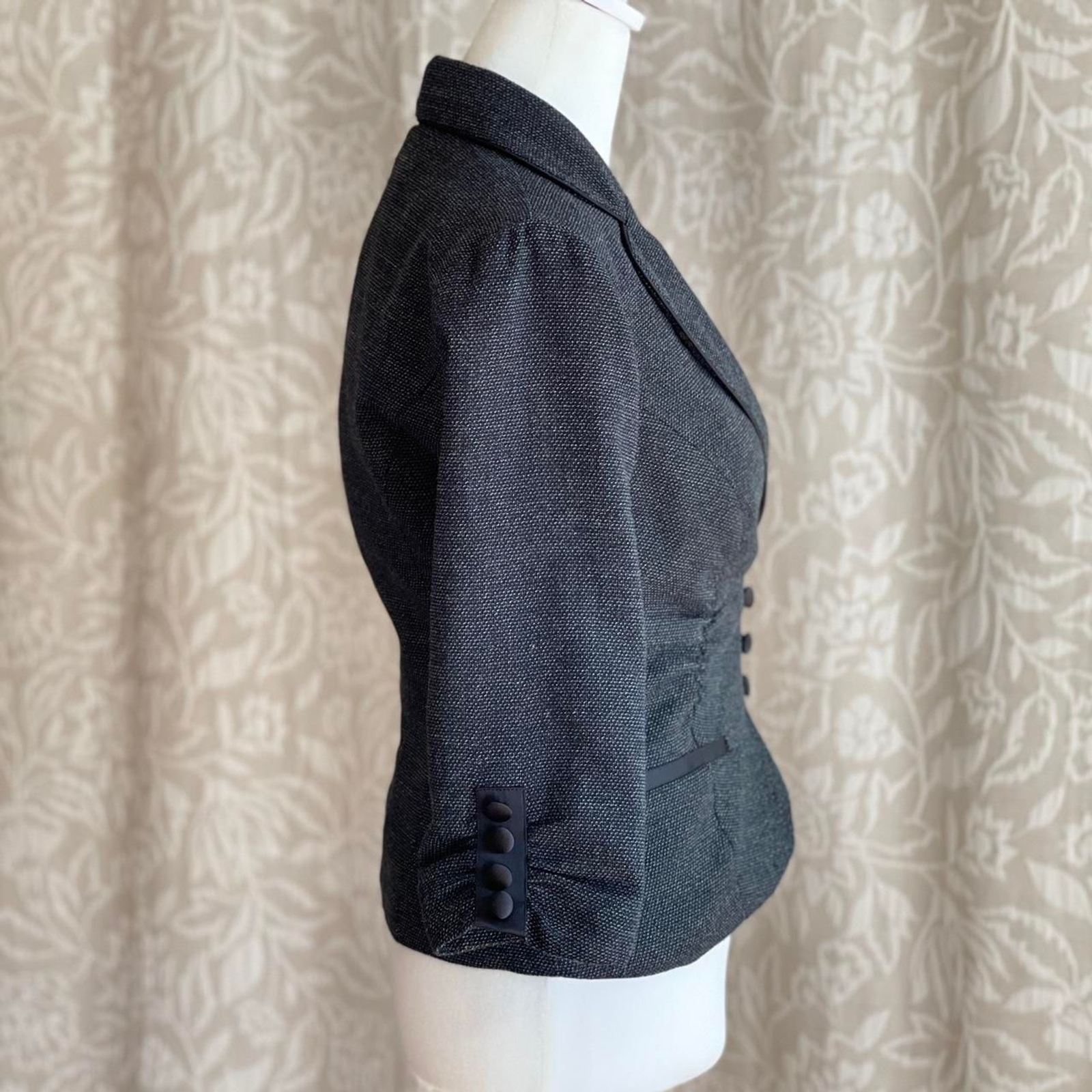 Office Siren Blazer in Dark Gray NWOT Description: form fitting dark gray 3/4 sleeve ruched front blazer by CR Signature in US women’s size S. Condition: perfect condition, never worn. New without tags Lay flat measurements: - pit to pit: 16 inches - shoulder to shoulder: 13 inches - waist: 13.5 inches - hips: 17 inches - shoulder to hem: 20.5 inches - sleeve length: 15.5 inches Mannequin measurements: - bust: 32 inches - hips: 24.5 inches - waist: 34 inches