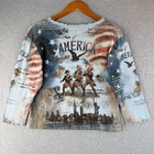 Cactus Top Women's Large Multicolor Graphic Cotton America History Rhinestone Description Cactus Top Women's Large Multicolor Graphic Cotton America History Rhinestone . See measurements below, Pit to pit 20" Length 20" Sleeve 18" Shoulder to shoulder 18" SKU J34 Product Detail • Brand : Cactus • Department: Women's • Colour : Multicolor • Type: Top Please message me if you have any questions.