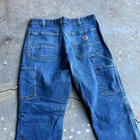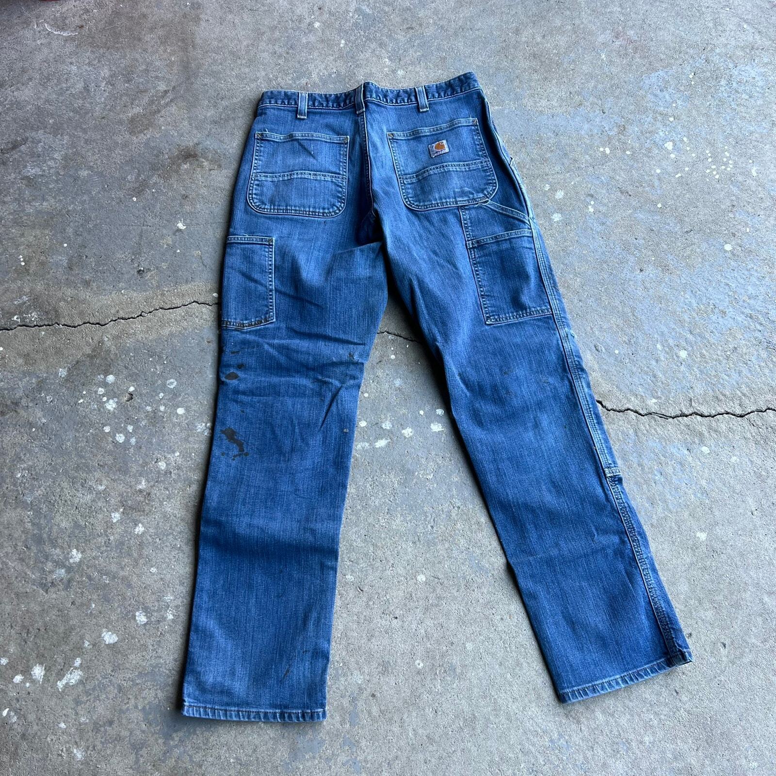 Y2K carhartt denim blue jeans double knee work wear carpenter pants. Good pair. Measure 31x30.5 and a 8 leg opening. Please check measurements before purchasing. I do my best to show any flaws in pictures. Quick shipping! Bundles encouraged! @ants_haul on Instagram.