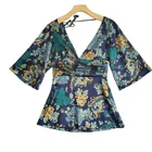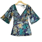 Y2K Guess Women's Silky Side Zip Kimono Style Deep V-Neck Top Small