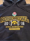 The product is a men's size XL shirt featuring the embroidered logo of the Iowa Hawkeyes, an NCAA football team that participated in the 2016 Rose Bowl. Officially licensed by the NCAA, this black shirt is perfect for fans of the team looking to commemorate their appearance in the prestigious bowl game. Made with high-quality materials and detailed embroidery, this shirt is a must-have for any Iowa Hawkeyes supporter.