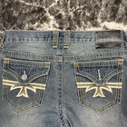 • Great condition, just a small hole in left pocket + missing button on back right pocket (pictured last and item discounted). Distressing on front is manufactured & intentional by designer • Waist: 32" Inseam: 32", Leg Opening: 9" • Items shipped everyday Monday through Saturday. Feel free to message if you have additional questions.
