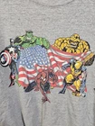 Elevate your wardrobe with a touch of nostalgia and the power of this Marvel crew with this vintage Y2K Marvel T-Shirt from Delta. A true classic, the shirt features a timeless solid gray color that serves as the perfect backdrop for the iconic comics-themed graphic. Its short sleeves and regular fit cater to a comfortable, yet stylish look that's ideal for casual outings or adding a retro edge to your everyday attire.Crafted with care, this medium-sized tee showcases the durability and quality that Delta is known for. With its distinctive fit and the distinctive thrashed aesthetic that only enhances its rarity and appeal, this T-shirt is a must-have for any enthusiast of the Marvel Universe or collector of vintage apparel. Moderate wear. Semi thrashing on collar and some pinholes. See pictures for reference!