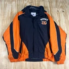 Show your support for the Cincinnati Bengals with this Y2K NFL puffer hooded jacket. With a full zip and vibrant black-orange color, this jacket is perfect for any football fan. It's made from high-quality materials and has a capacity of 15 oz. This officially licensed jacket is men's size XL and features the team's logo prominently on the front. It's perfect for the Super Bowl or any other football event. Made in Sri Lanka, this jacket is a must-have for any fan of the National Football League. SKU: PK-36-12