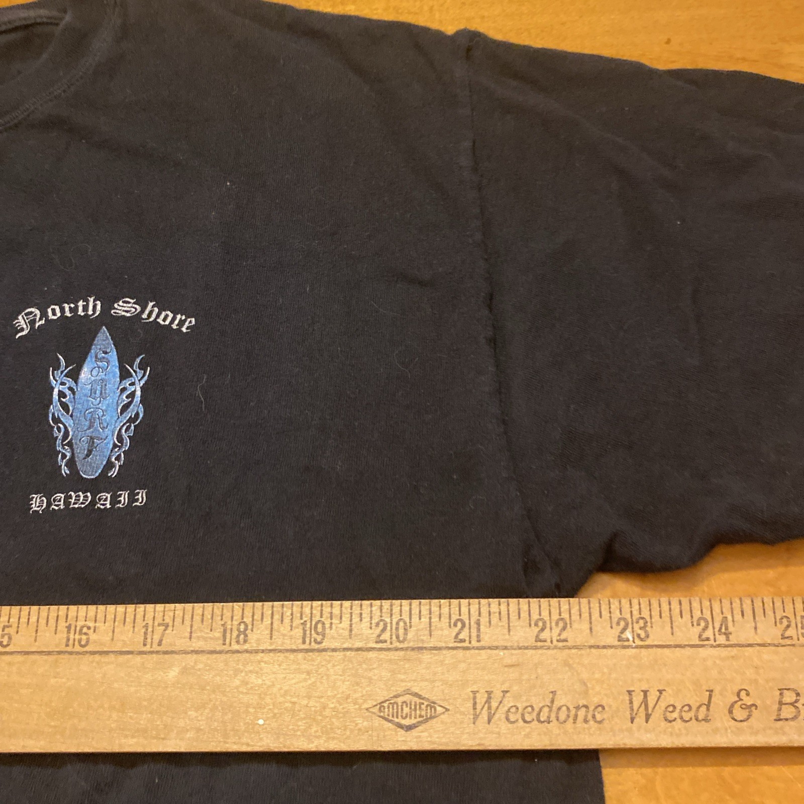 The Y2K North Shore Hawaii Surfing Paradise Shirt in size XL is a black T-shirt from the brand Anvil. It is made of cotton and features a crew neckline and short sleeves, making it a comfortable and stylish option for men who love the beach and Hawaiian theme. This is NOT a size XL anymore please see measurements This is a pre owned shirt please look over pictures and measurements